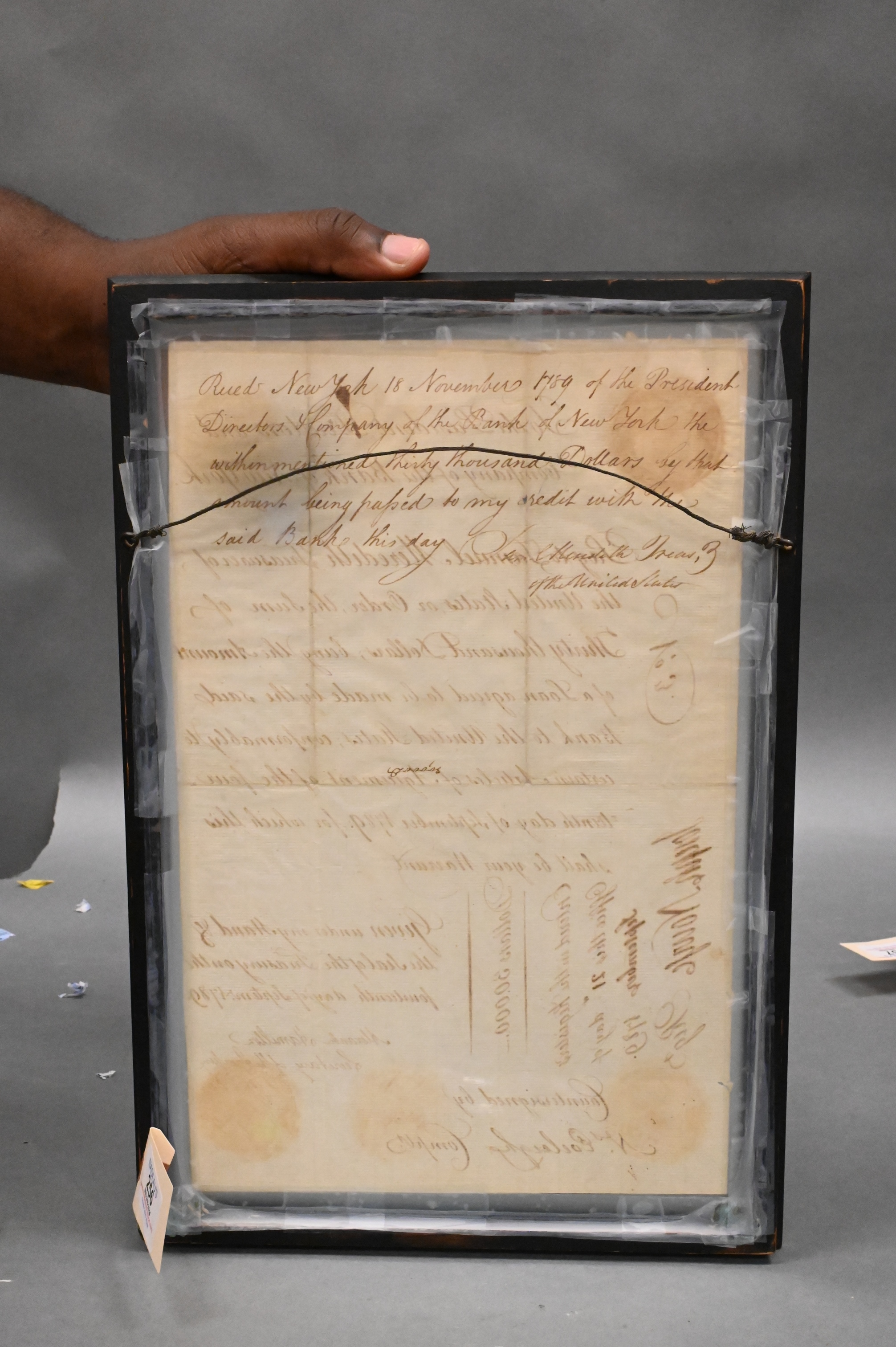 Lot 256: Alexander Hamilton 1789 Federalist Era Handwritten Bank Slip