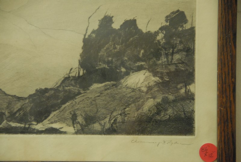 Lot 256: Chauncy F. Ryder 1886-1989 drypoint French Hill pencil signed lower right Chauncy Ryder, having Knoke Fine Arts label on reverse…