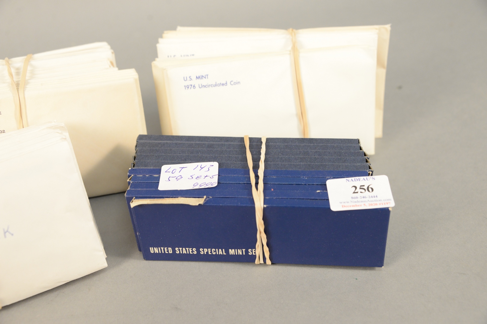 Coin lot to include, 59 sets, box lot of mint sets to include 5 – 1965 special mint sets 5 – 1966 S.M.S. 5 – 1967 S.M.S. 5 – 1969 5 – 1970 5 – 1971 5 – 1972 5 – 1973 3 – 1974 2 – 1975 3 – 1976 1 – 1977 2 – 1978 2 – 1979 and 1 – 1981.