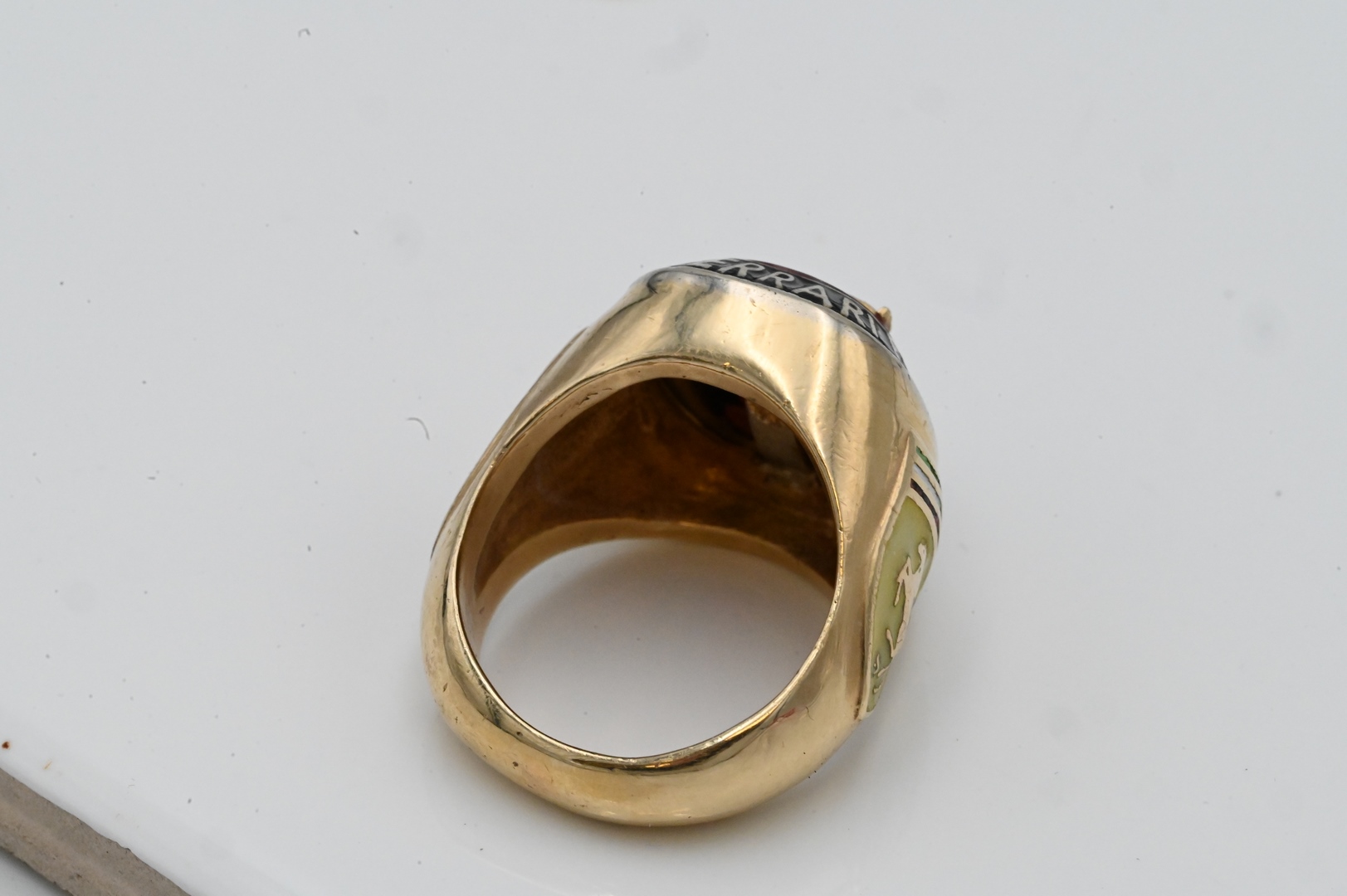 Ferrari 14 Karat Yellow Gold Ring set with red stone size 10, 28.7 grams