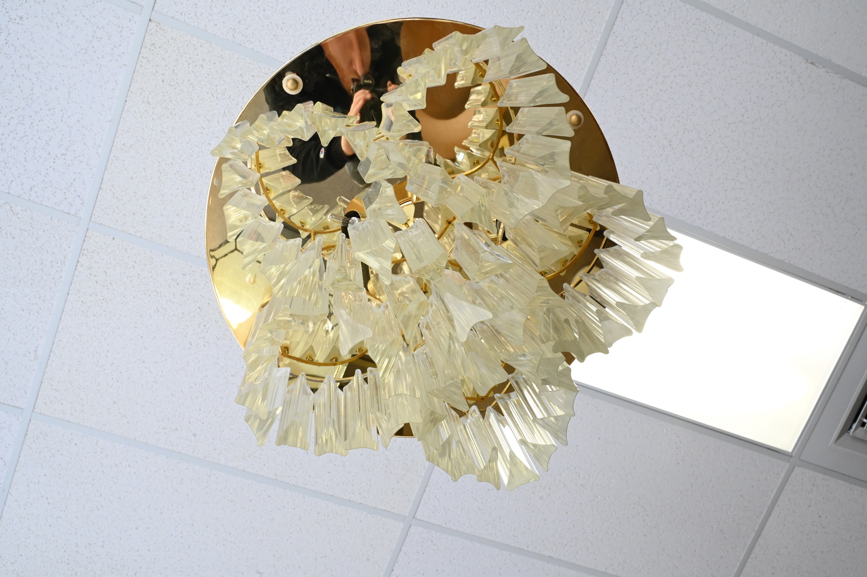 Five Light Venini Brass and Glass Ceiling Hanging Light