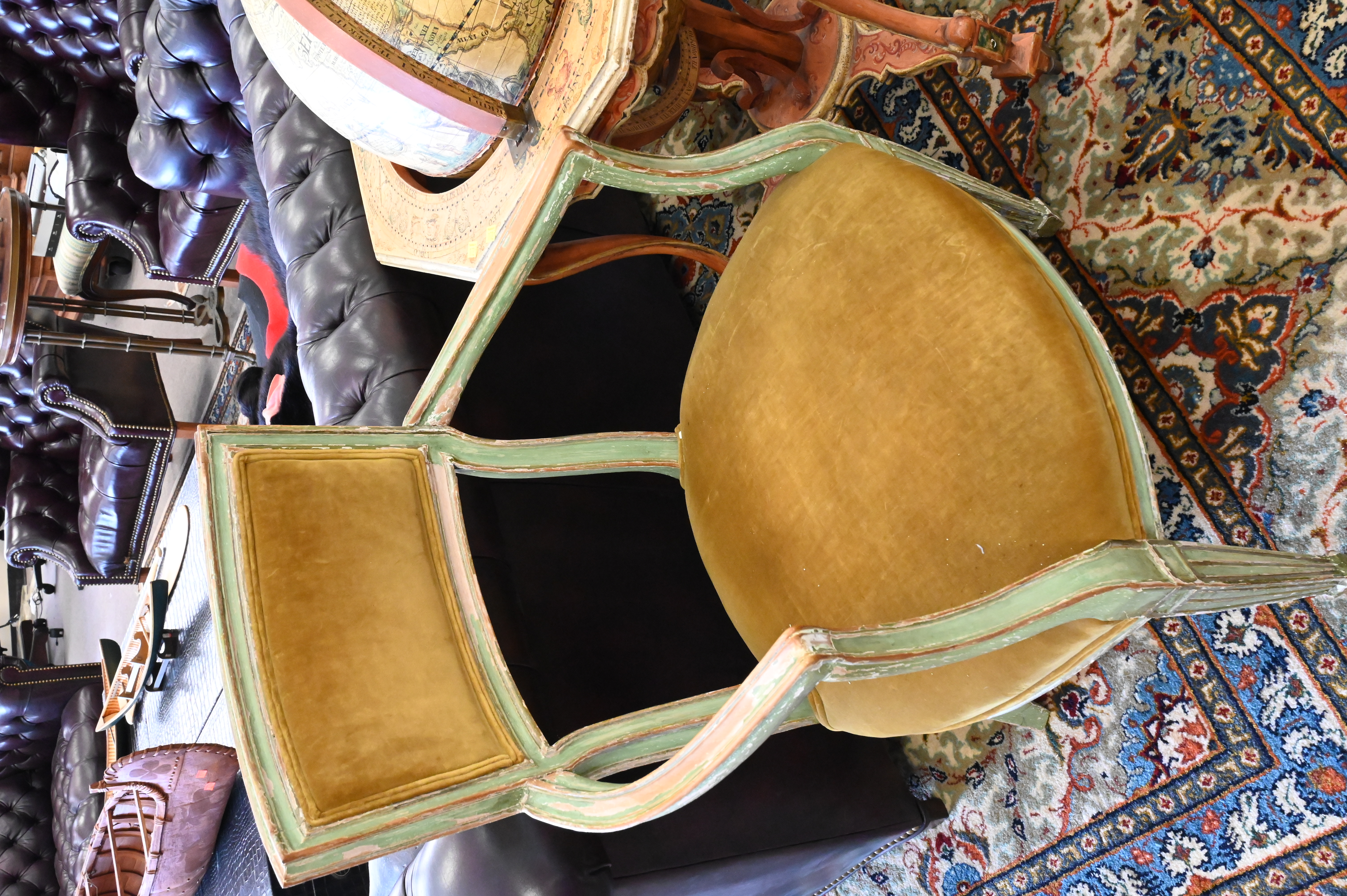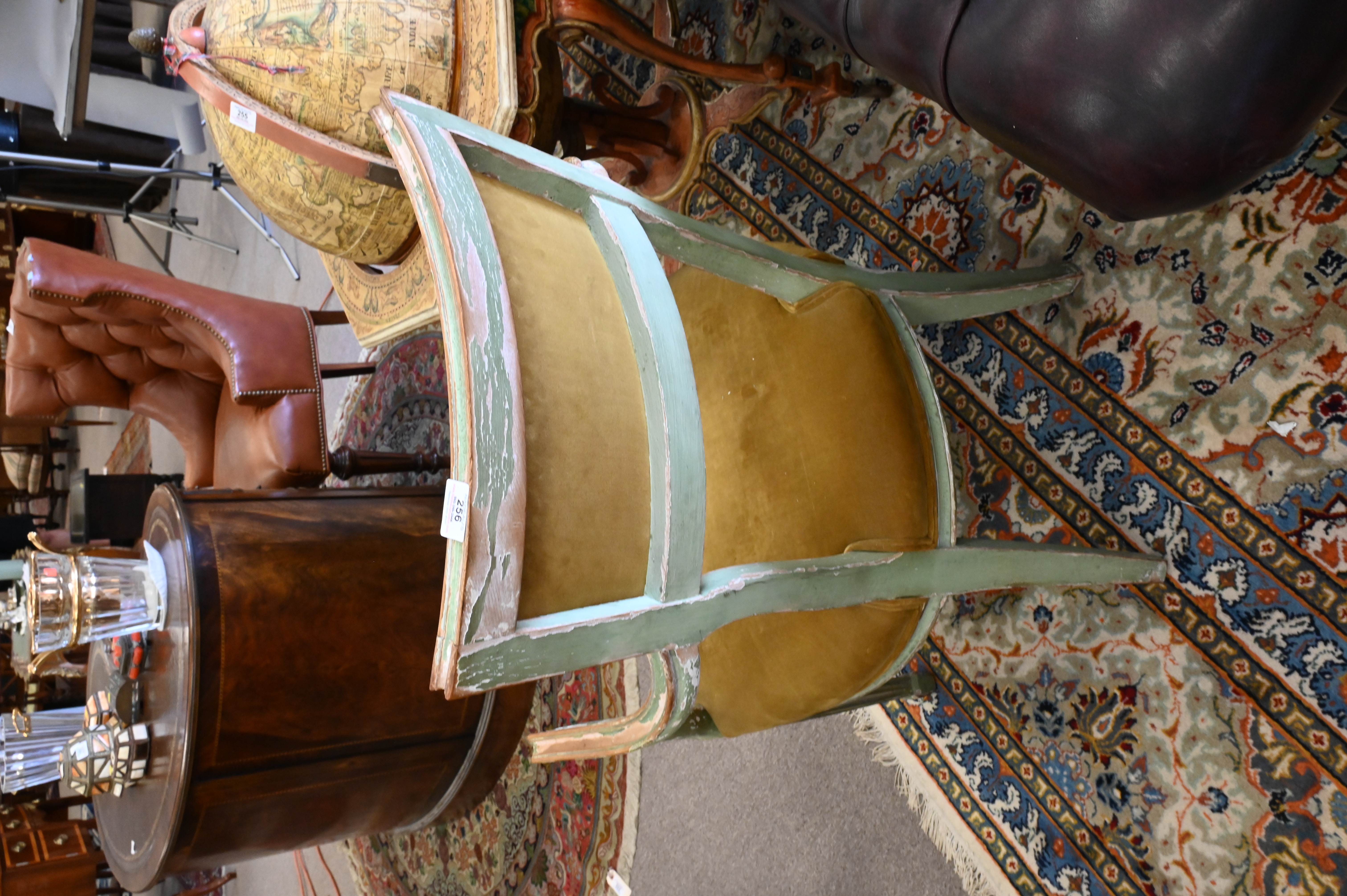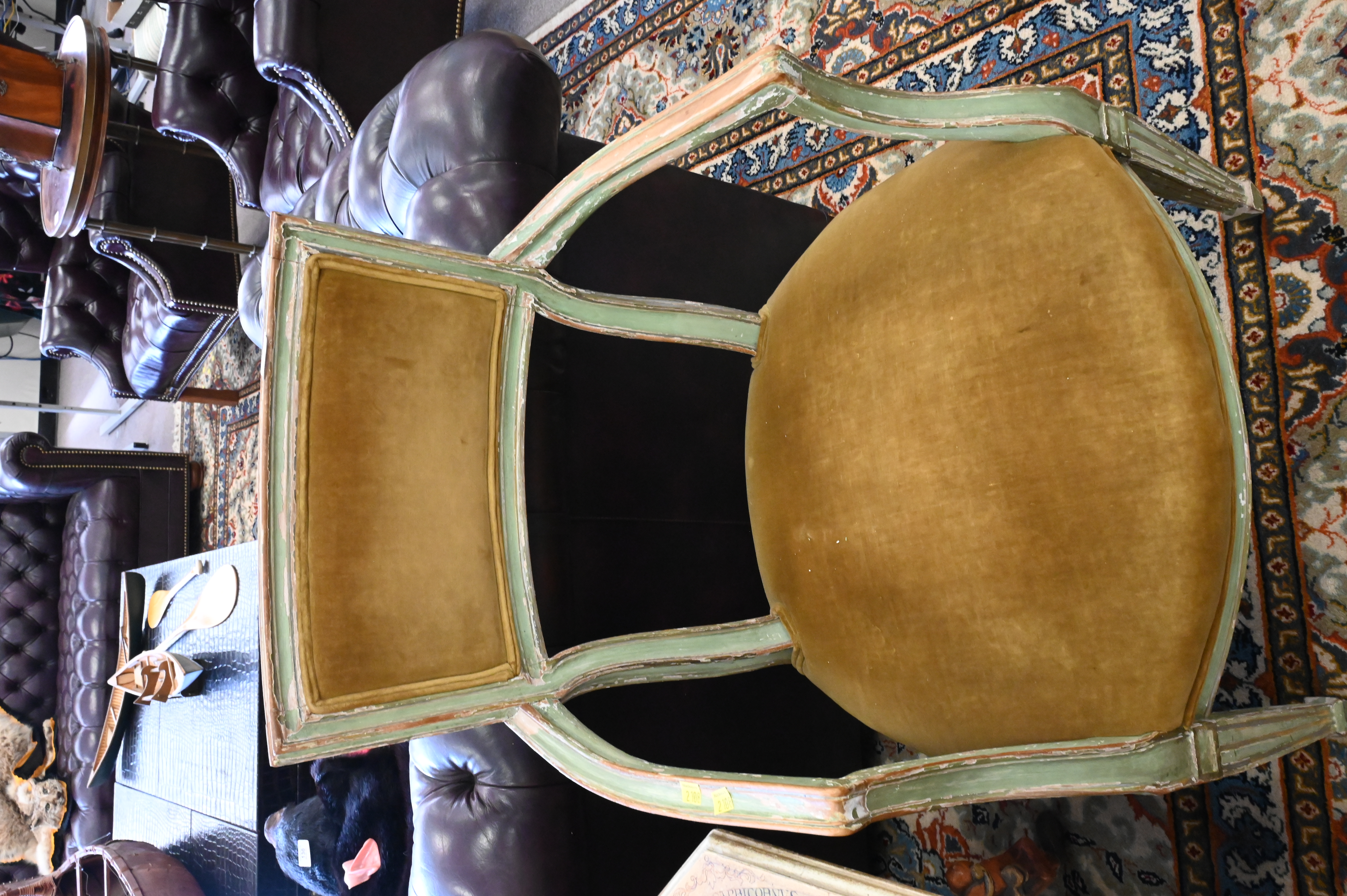 Pair of Italian Classical Painted Wood Open Arm Chairs, height 36 inches, width 23 inches.