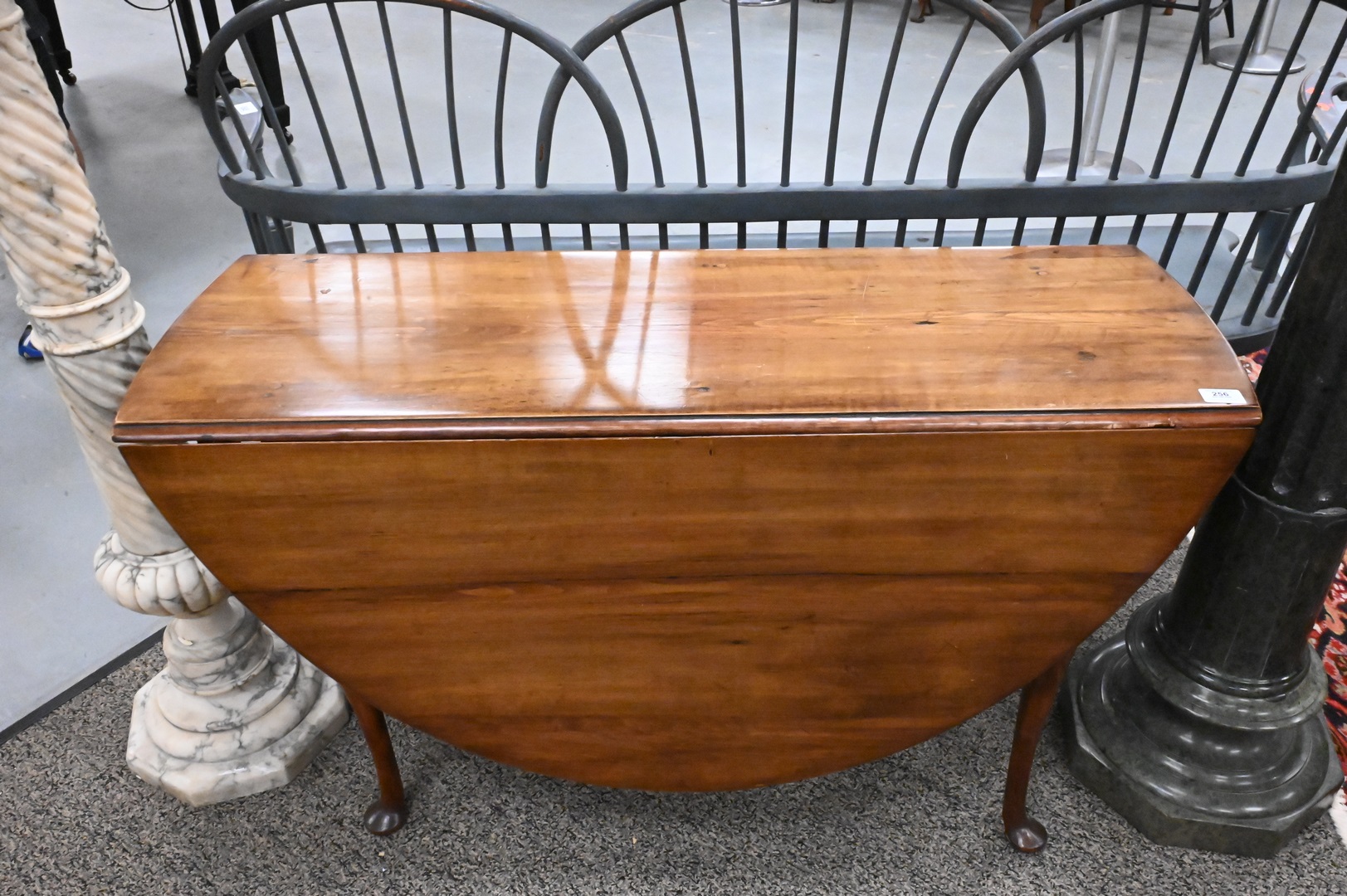 Queen Anne Cherry Demilune Table, on cabriole legs, having pad feet, circa 1750, height 27 inches, top 14 1/2″ x 45″. Provenance: Estate of Peter Tillou, Litchfield, Connecticut.