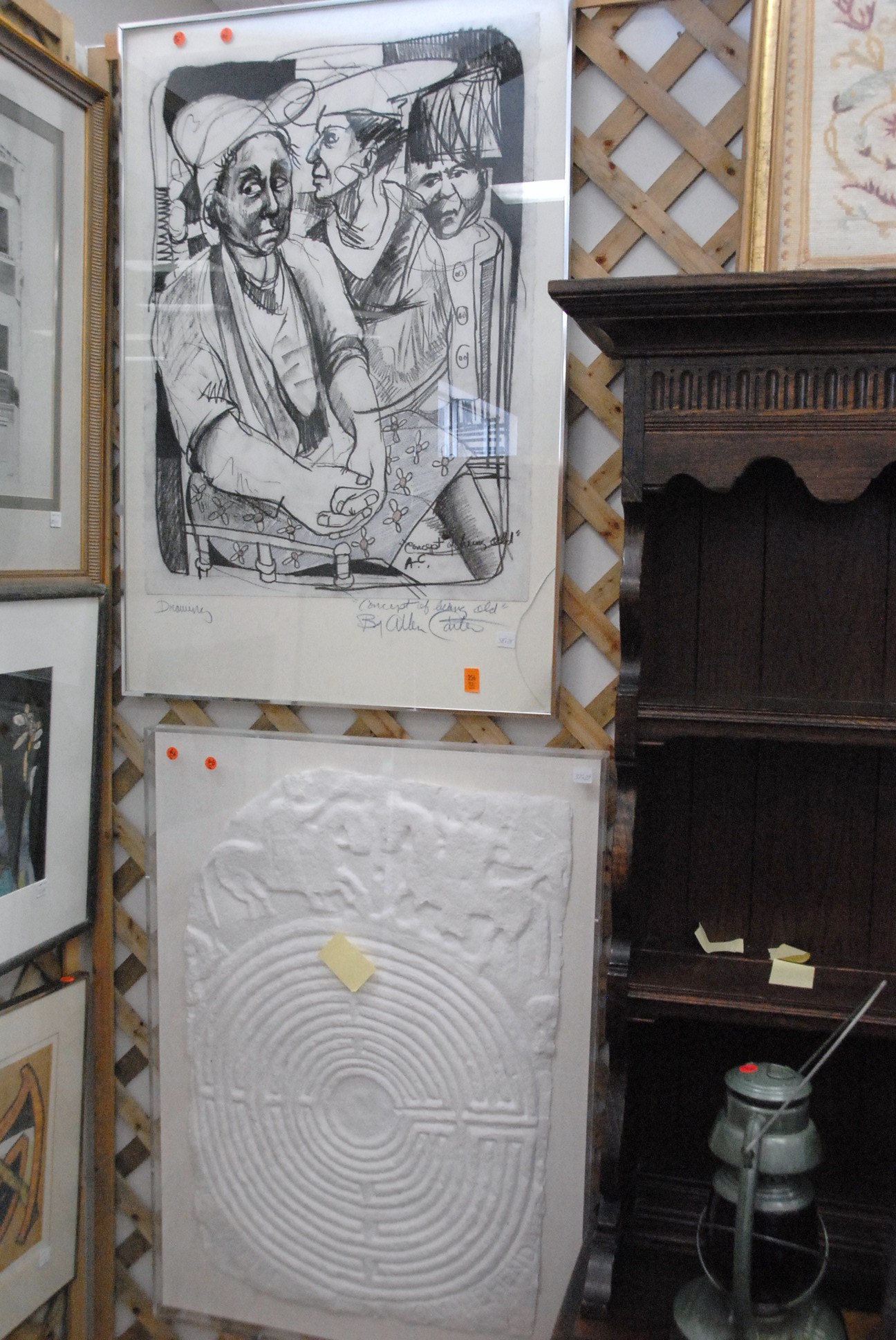 Two piece lot to include a drawing concept of being old by Alan Carter, along with a 3D wall hanging.