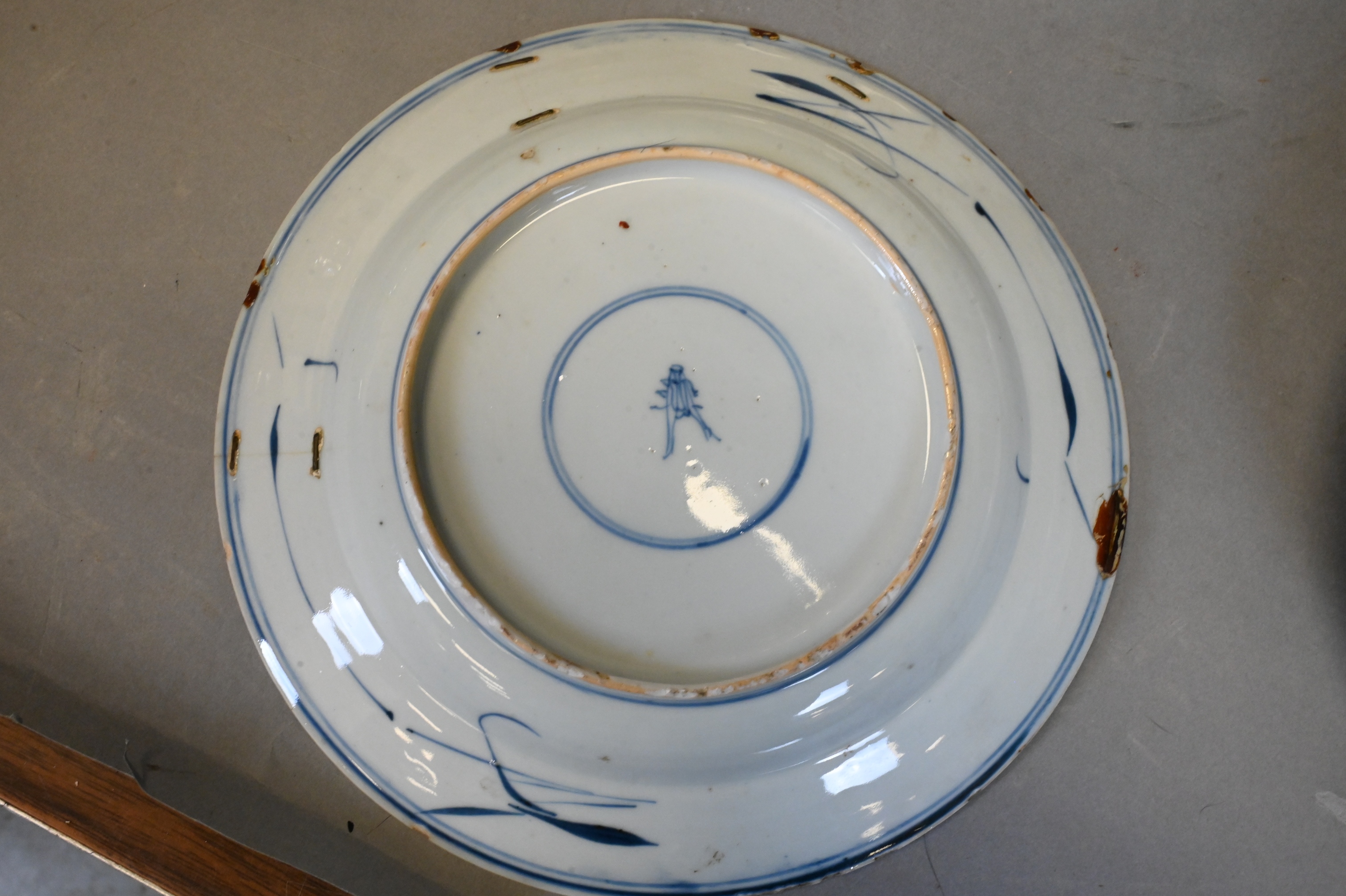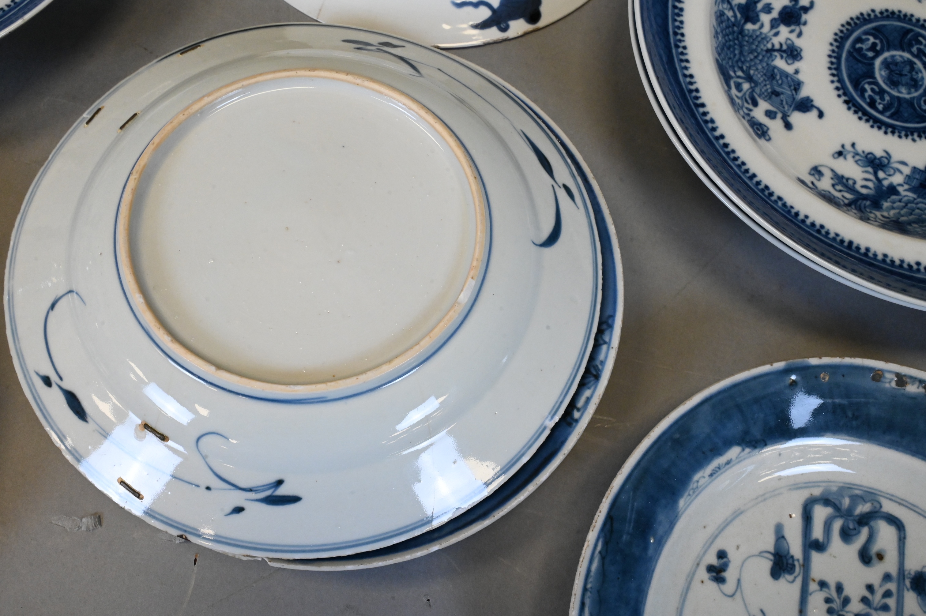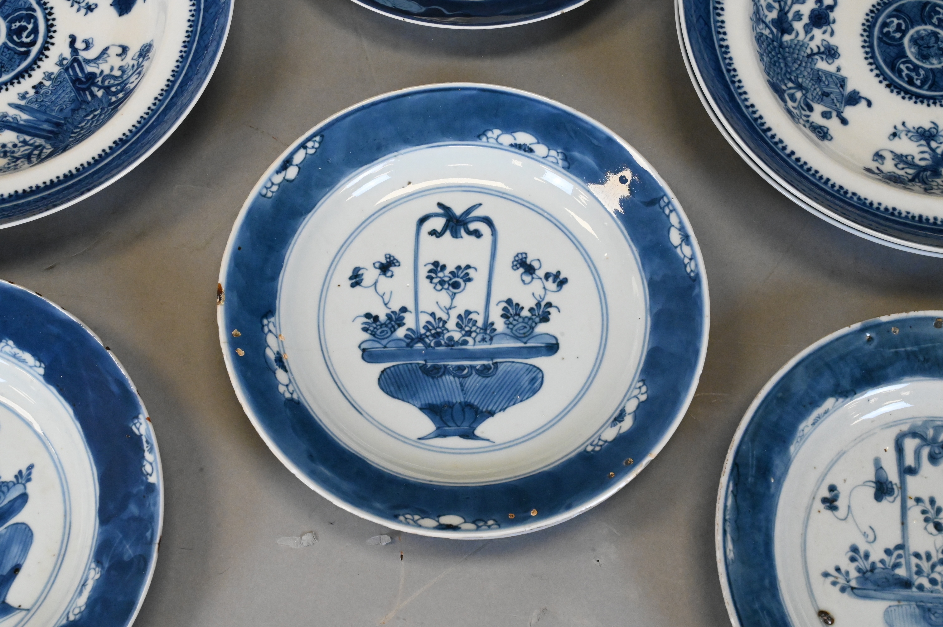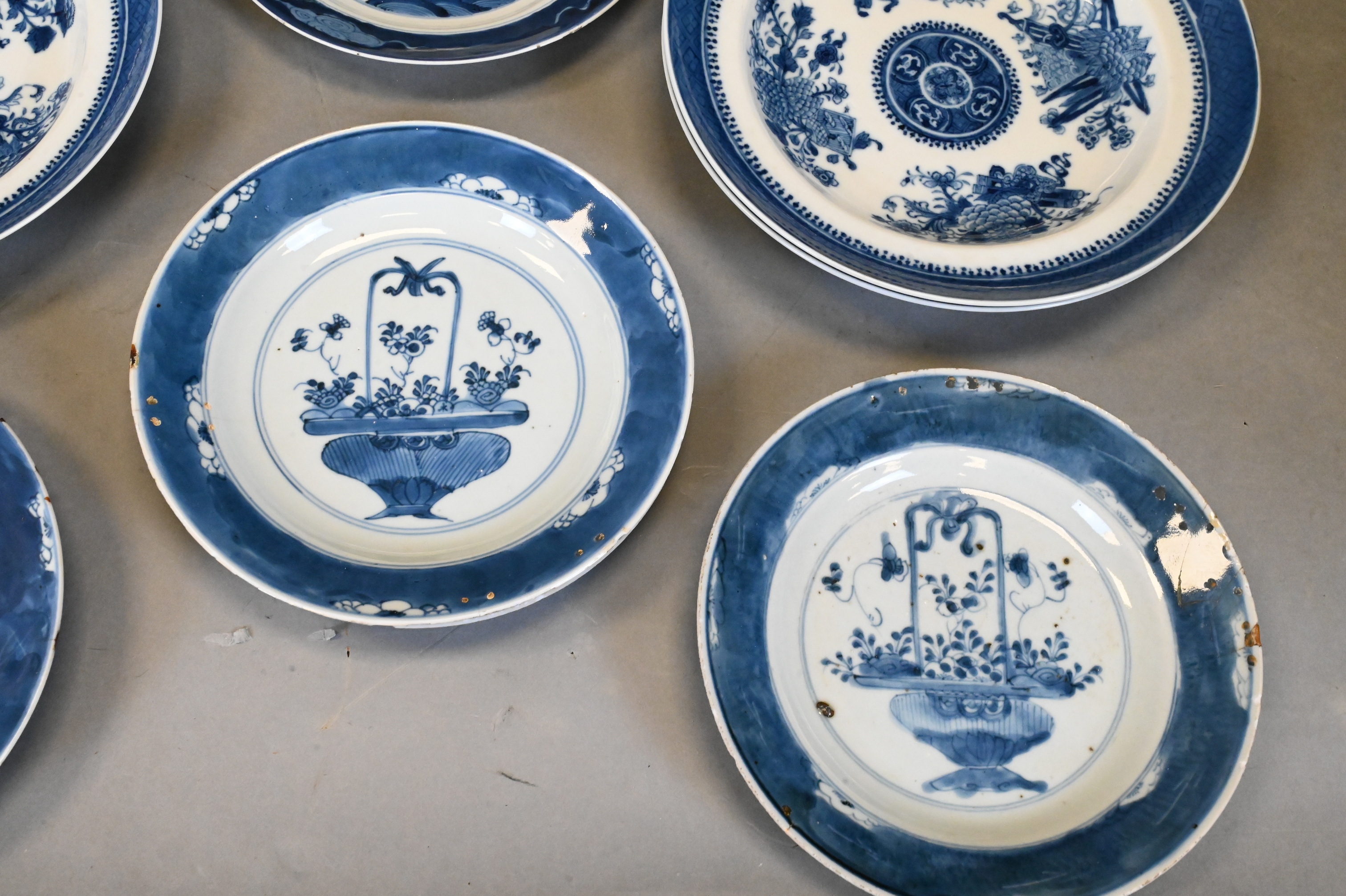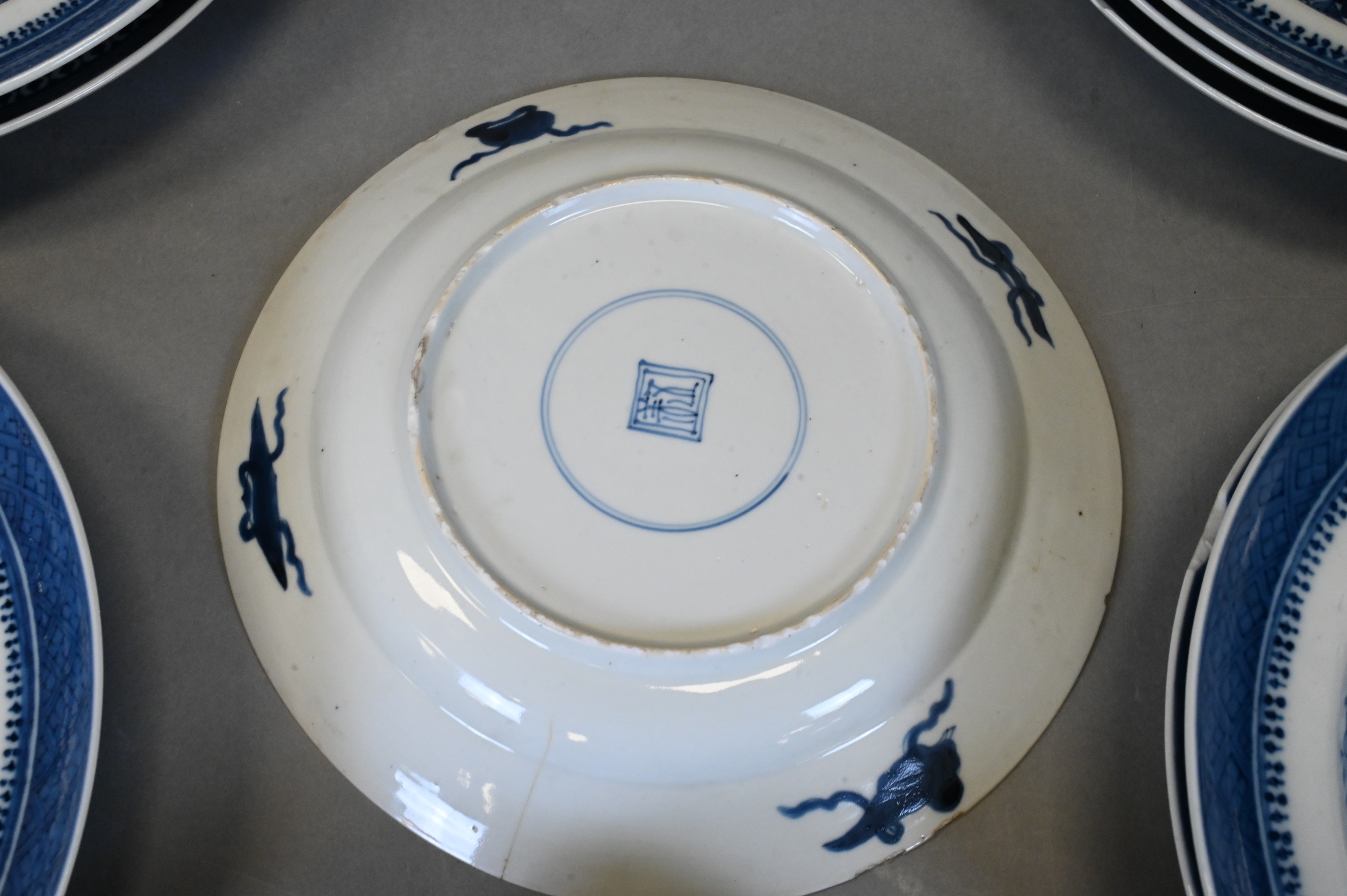 to include set of eight Chinese export Nan King deep plates, four Canton deep plates, baskets of flowers, white round dragon amongst waves plate, two stapled rim chips, small rim chips to three of the Nan Kings