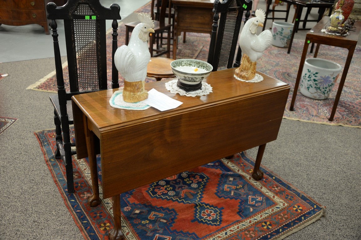 Lot 257: Chippendale mahogany table with rectangular drop leaves, circa 1760. ht. 28 1/2in., top closed: 14 1/2 x 47 3/4, top open: 47 3/4…