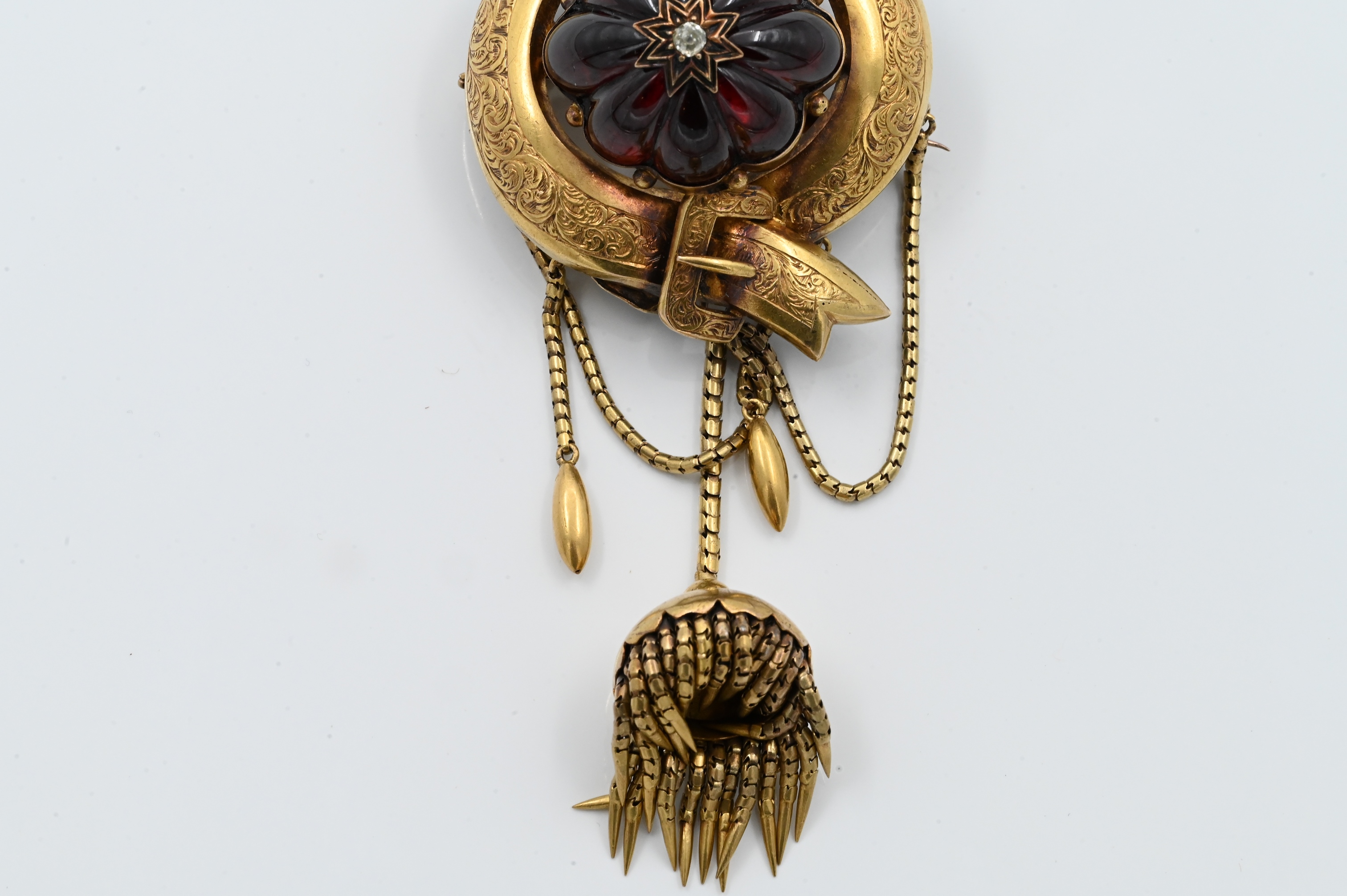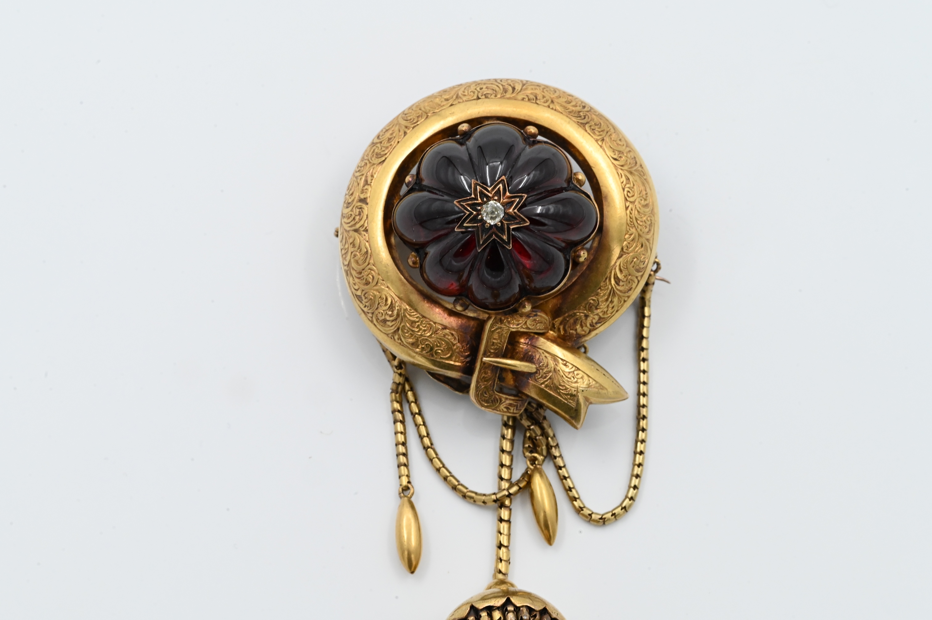 Lot 257: Georgian 14K Yellow Gold Brooch having Center Diamond