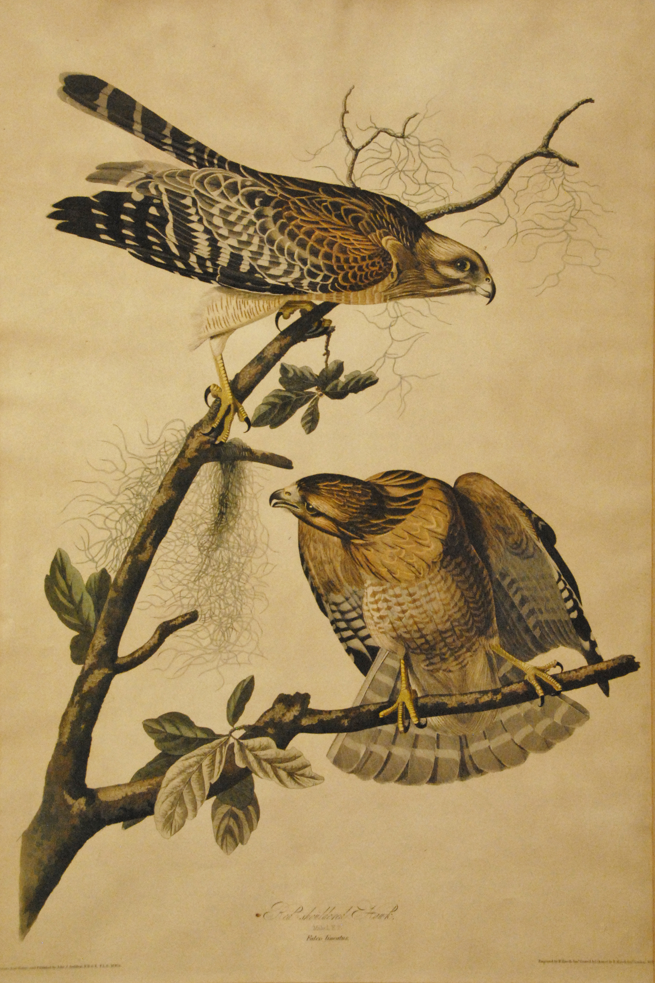 Lot 257: John James Audubon 1785-1851 RED SHOULDERED HAWK Male 1 F2 Falco Lineatus hand colored engraving marked lower left: Drawn from nature and published by John J. Audubon F.R.S.E. F.L.S. M.W.S. marked lower rig