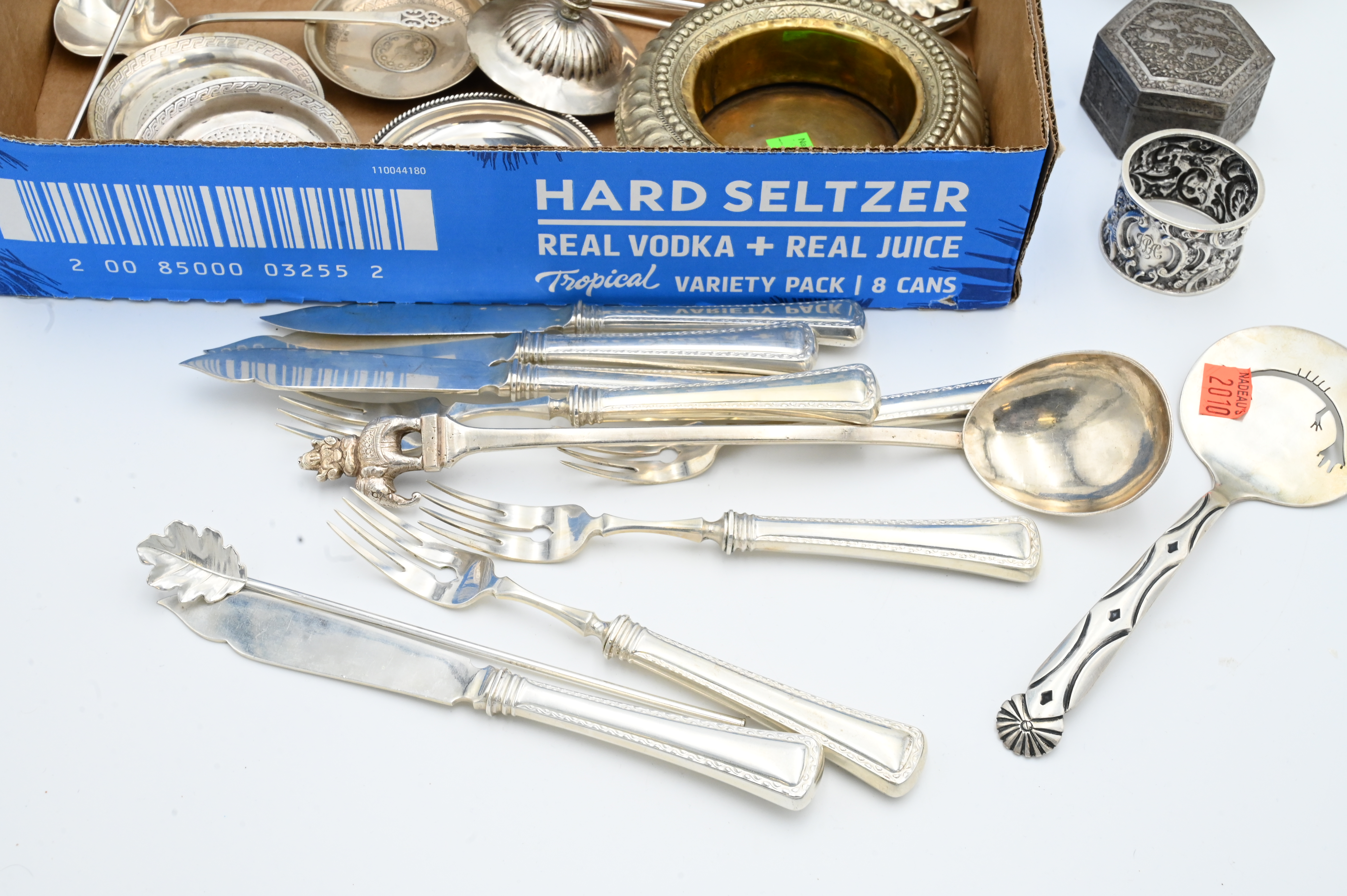 Lot of Assorted Continental Silver, to include a box, small bowls, along with mixed flatware, 34.7 t.oz.