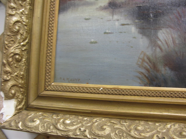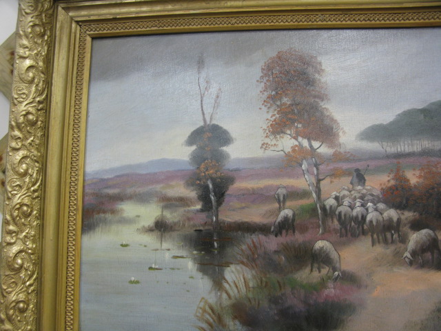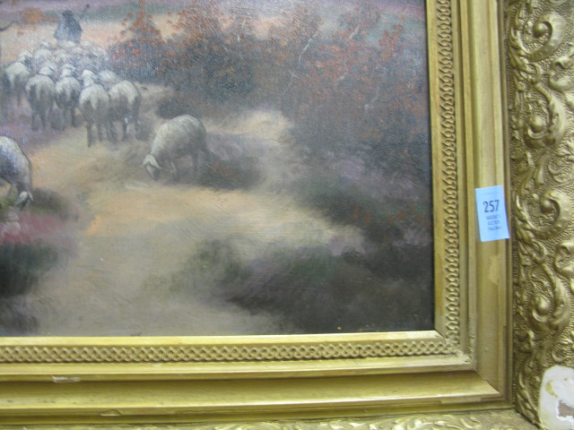 Oil on board painting herding sheep signed lower left N.A. Mauve
