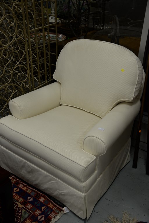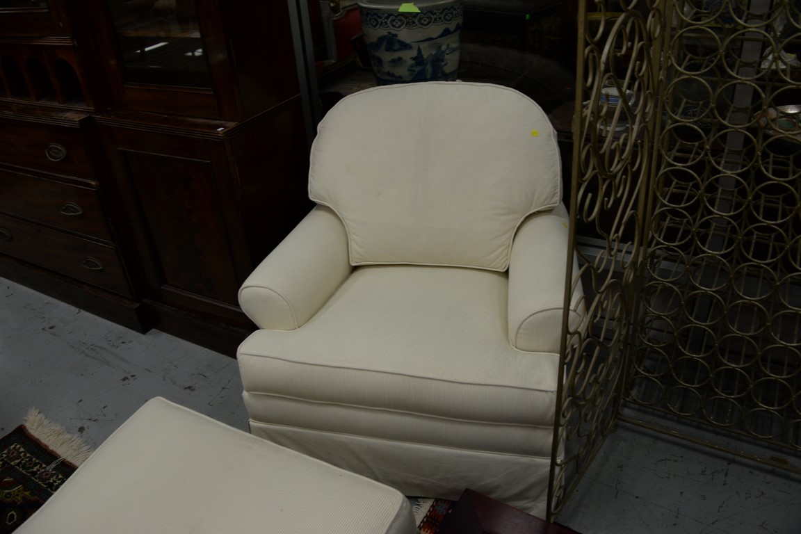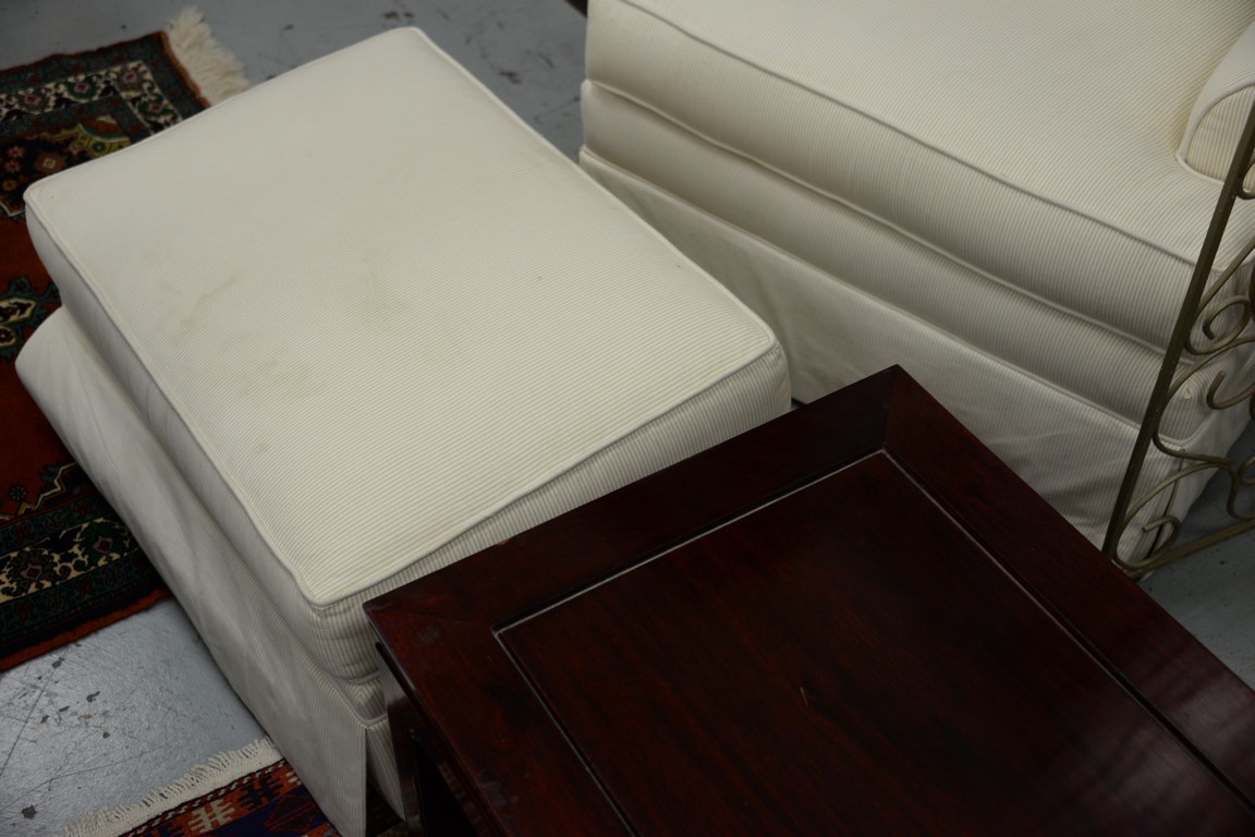 Pair of Ethan Allen upholstered chairs and one ottoman.
