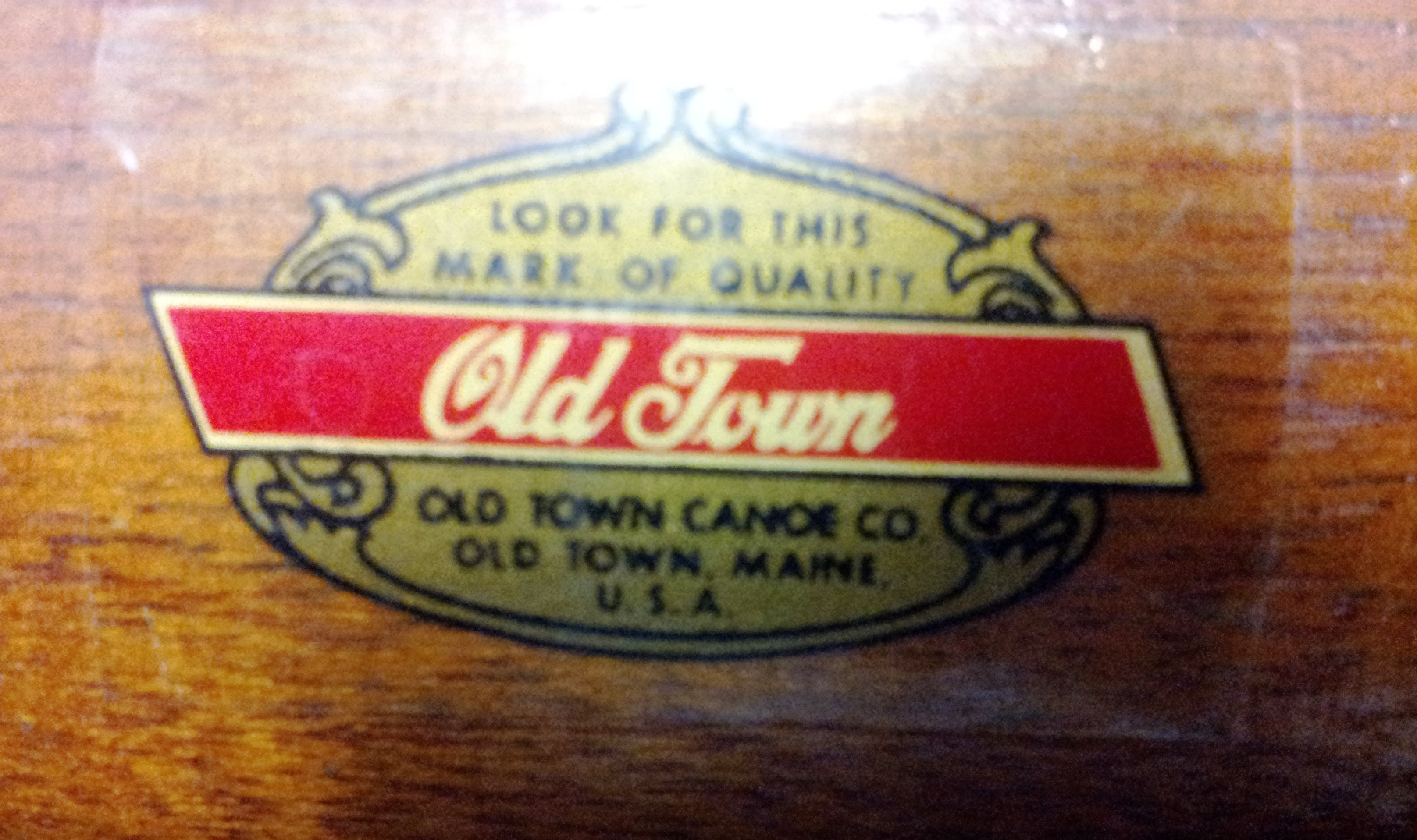 Old Town Canoe Co. mahogany advertising sign canoe and two paddles.
