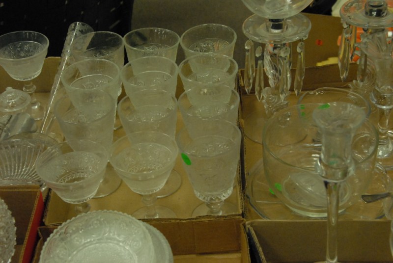 6 box lots to include pressed glass, crystal, candlesticks, fingerbowls, under plates, and cranberry glass.