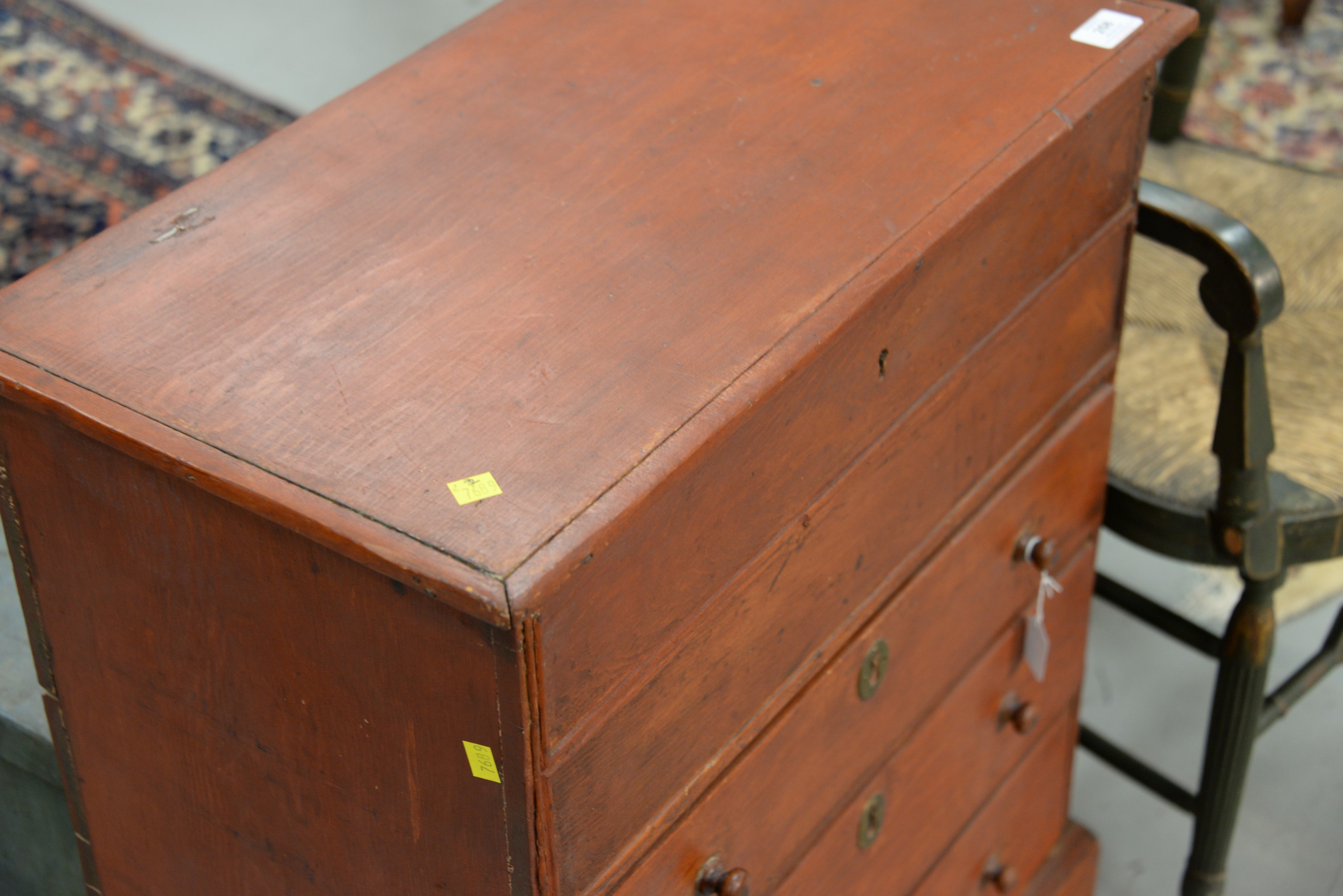 Lot 258: Diminutive blanket chest having lift top and two false drawers over three drawers all set on bracket base, circa 1750-1770 refinish…