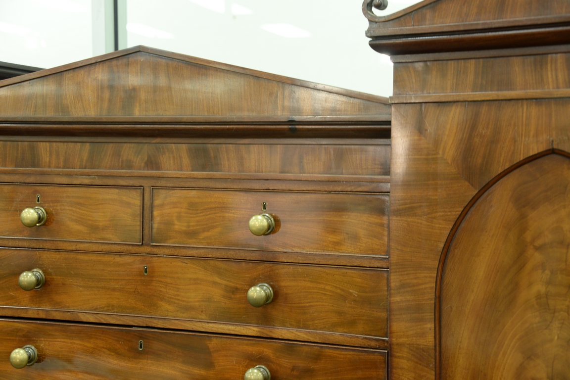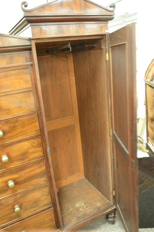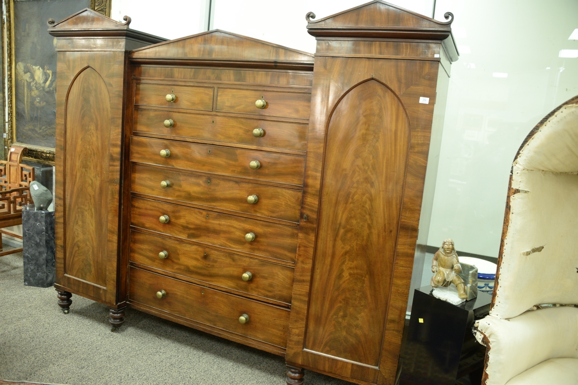 Lot 258: English 19th century mahogany chifferobe having two over six drawers flanked by two doors. ht. 78in., wd. 89in., dp. 24in. Provenanc…