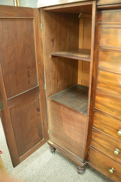 English 19th century mahogany chifferobe having two over six drawers flanked by two doors. ht. 78in., wd. 89in., dp. 24in. Provenance: Collection of Anne Jones Willis and the late John Ralph Willis, New Jersey