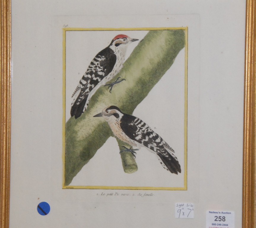 FRANCOISE NICOLAS MARTINET 1725-1804 GROUP OF FOUR hand colored etchings, two signed lower left Martinet plate size 10 1/8 x 8 1/4