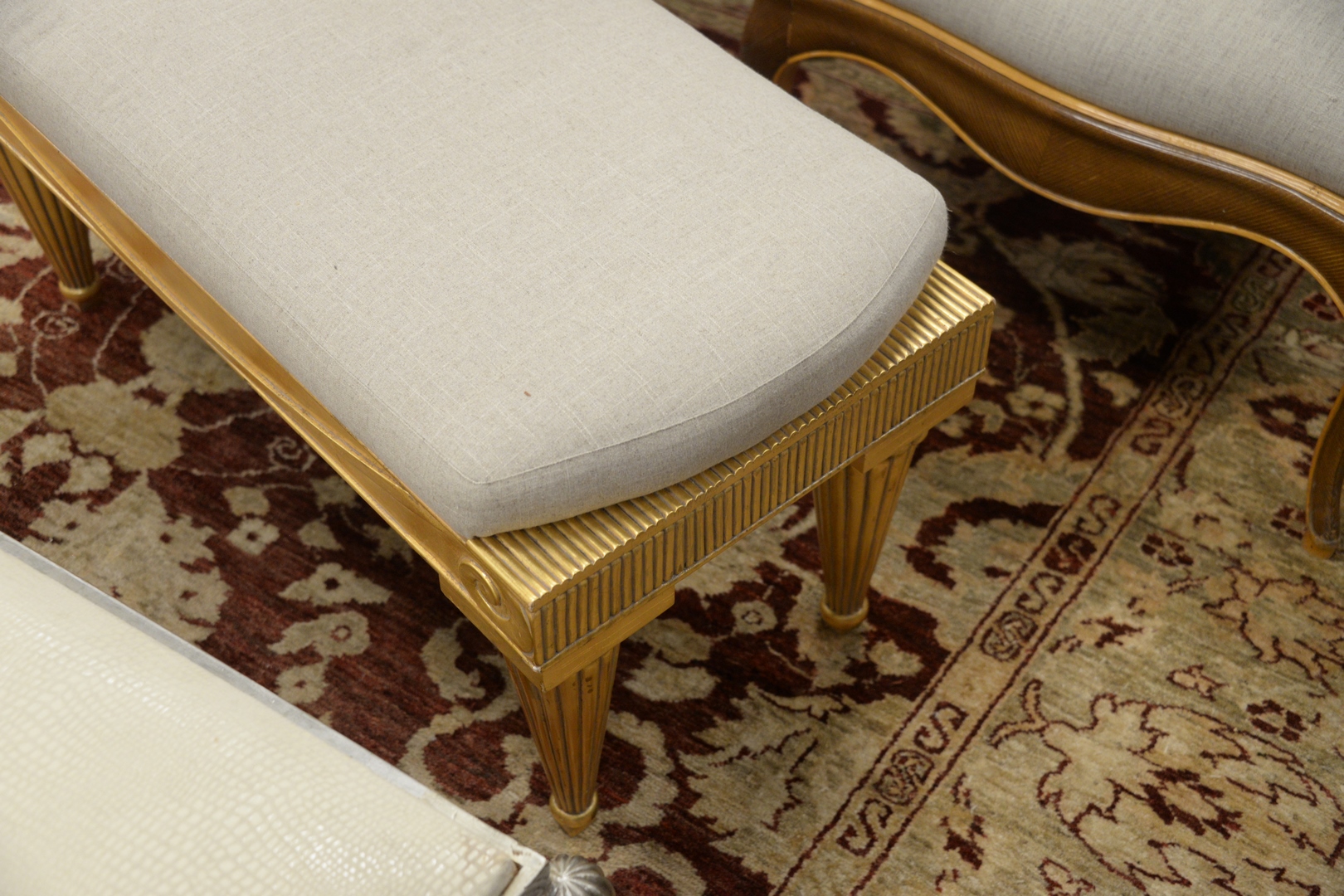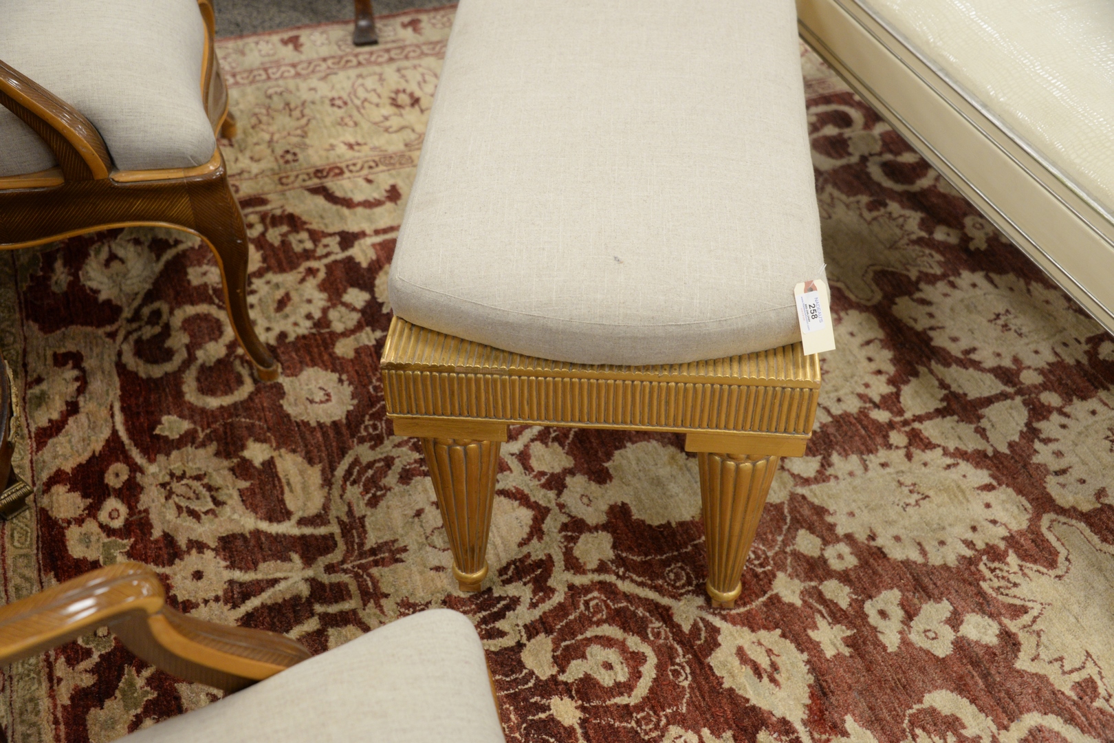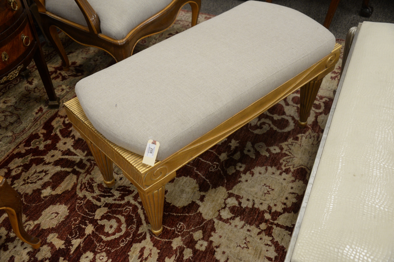Giltwood Bench, having upholstered top on reeded legs, height 20 inches, top 16 x 43.