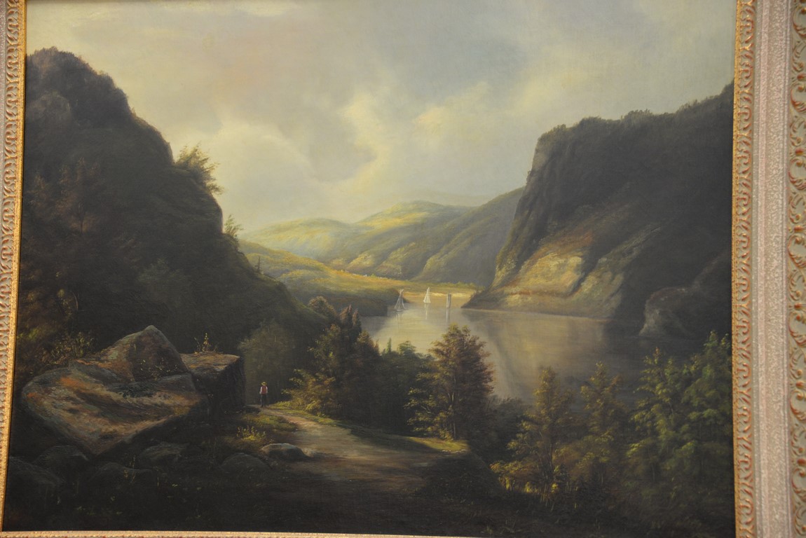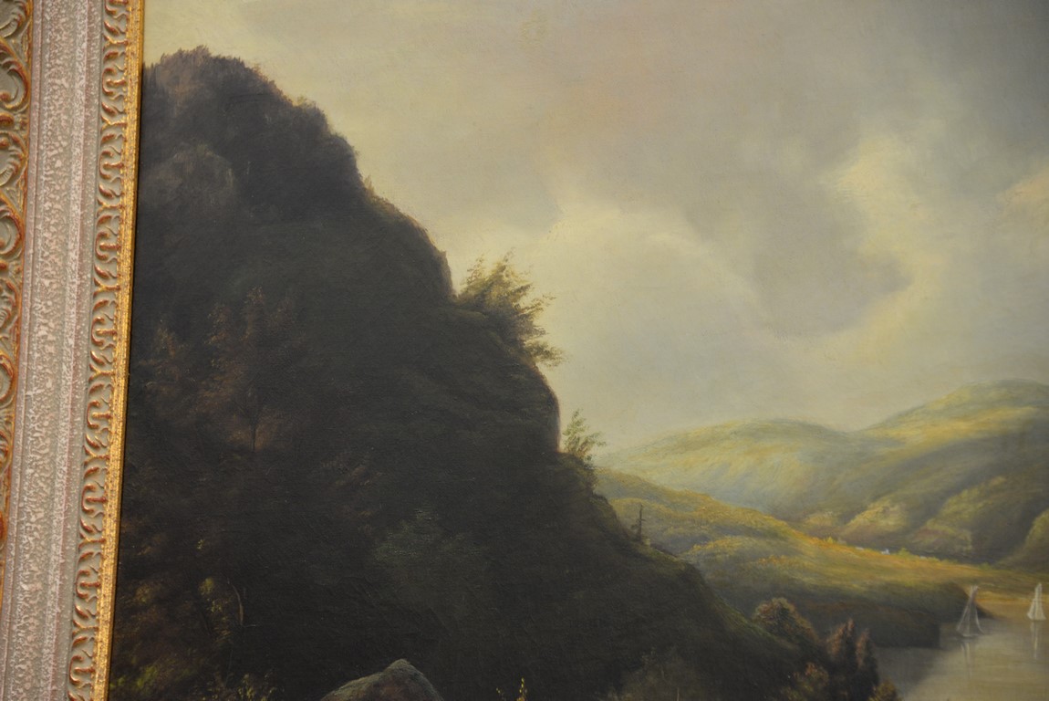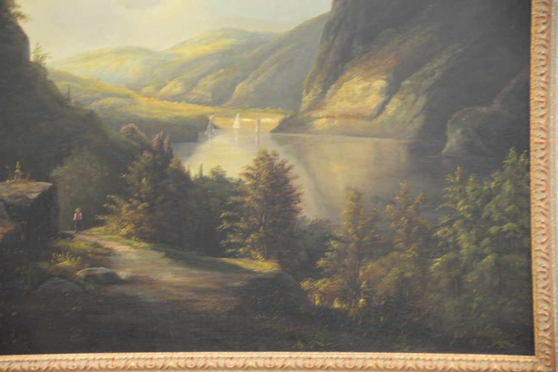 Hudson River Landscape oil on canvas unsigned New Britain Museum label on reverse 24 x 32