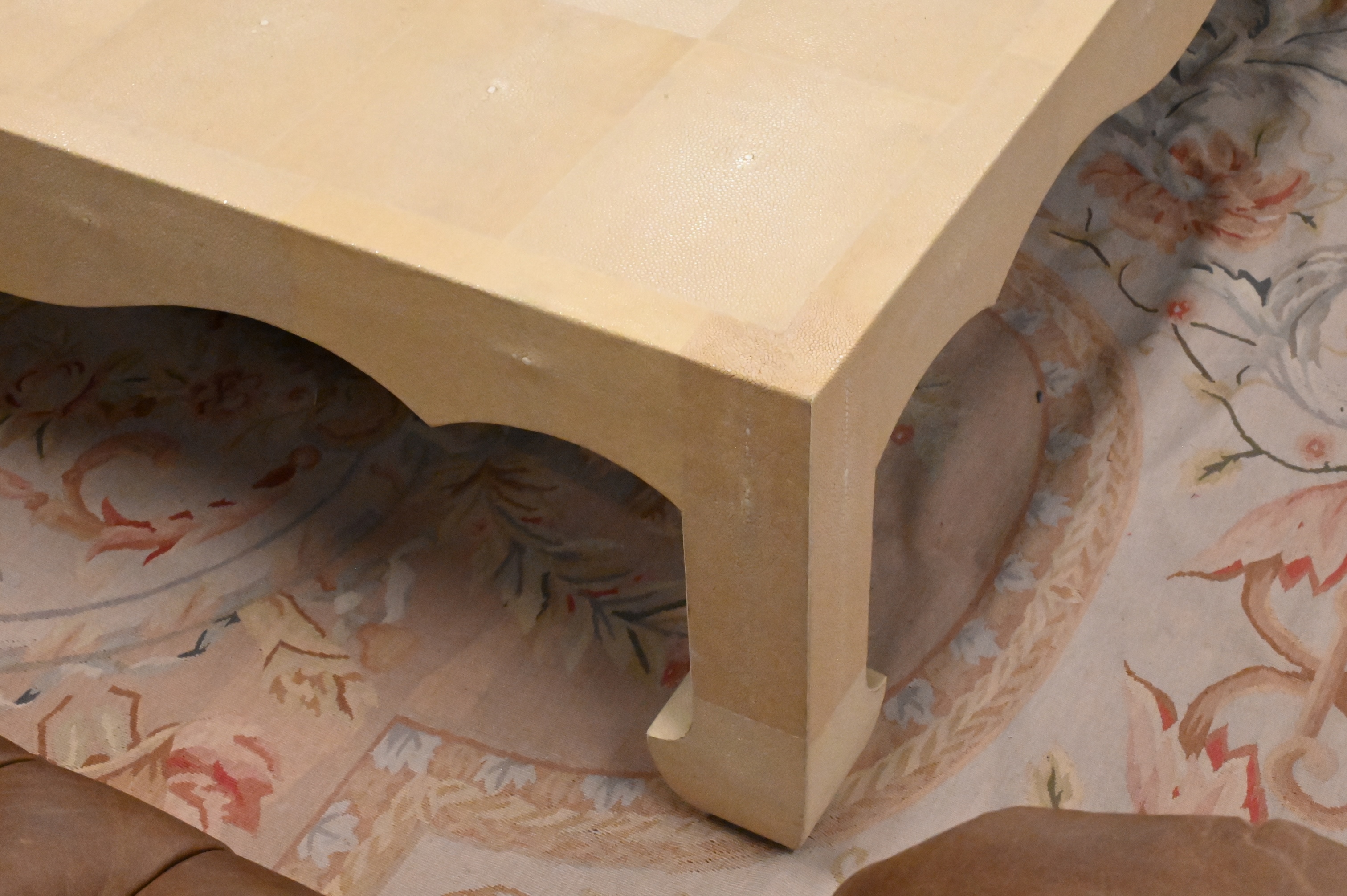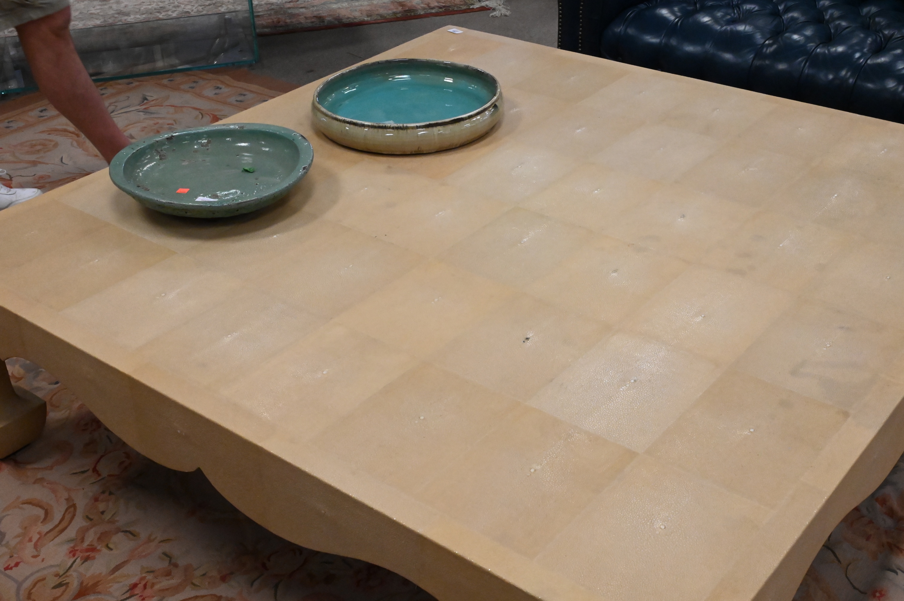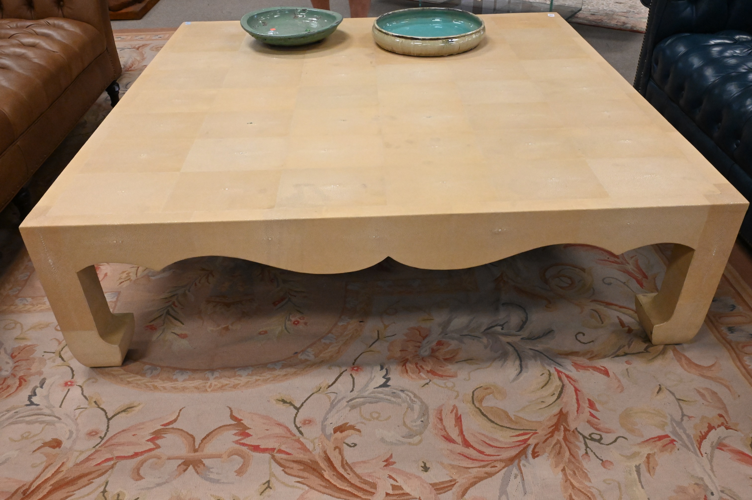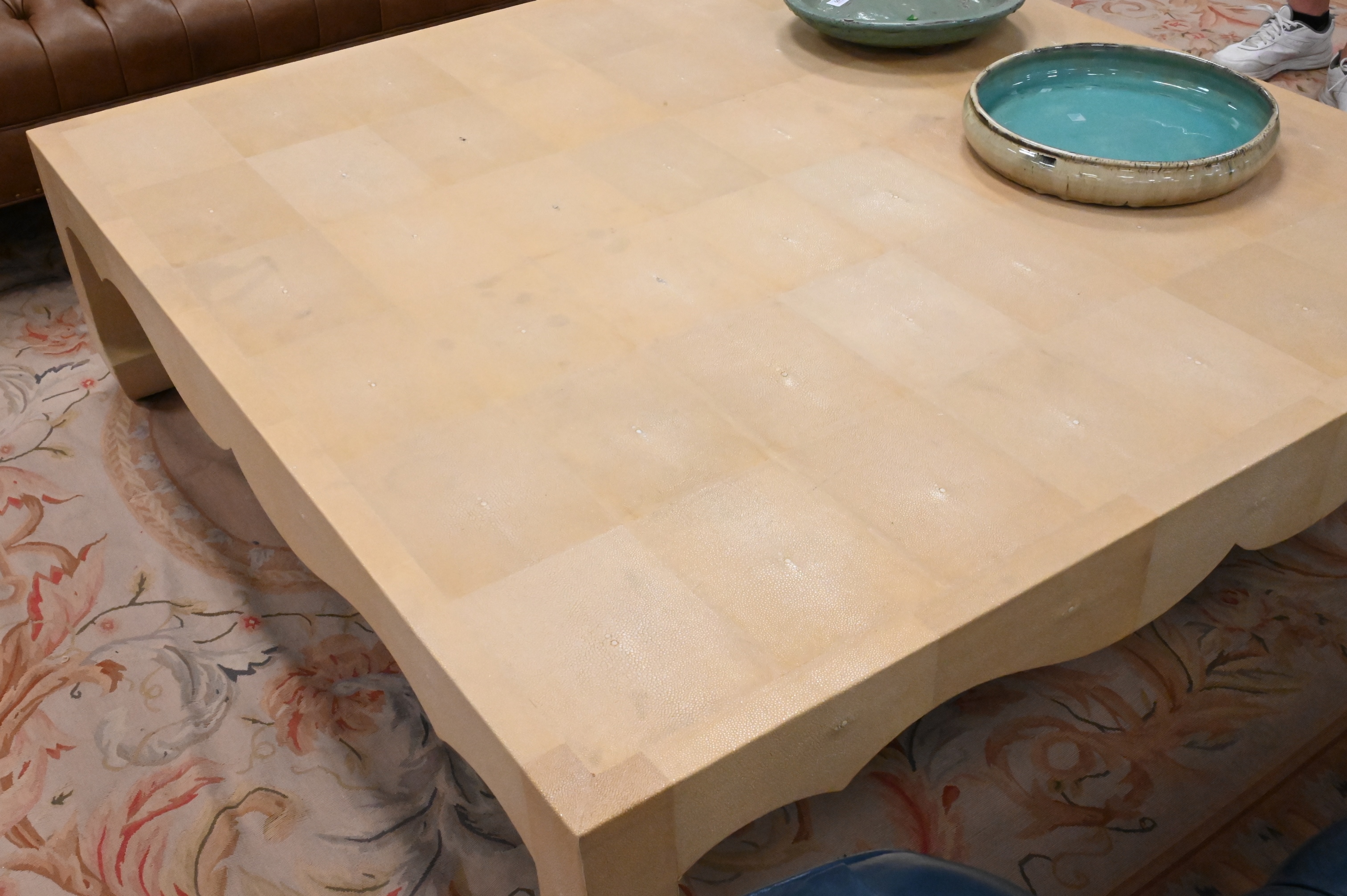 Karl Springer Style Oversized Shagreen Coffee Table, height 17 1/2 inches, top 60″ x 60″