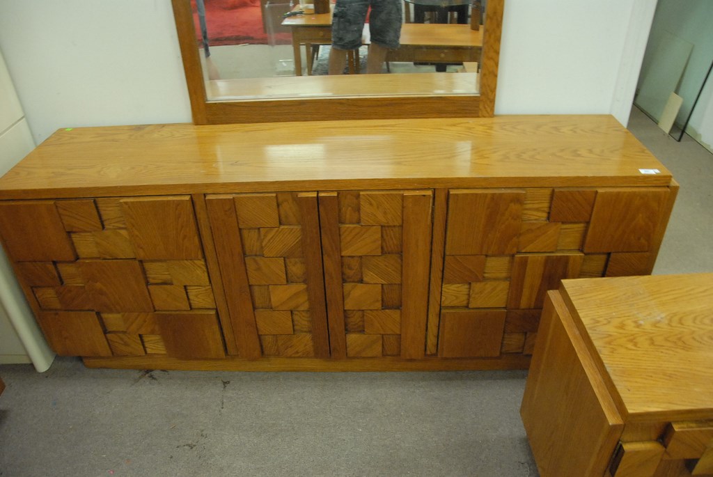 Lane Furniture oak chest with mirror and nightstand, mirror: lg. 78in.