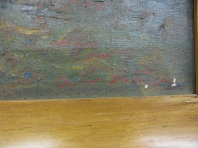 Oscar Anderson 1873-1953, WALKING UP TO THE CHURCH IN THE FALL, oil on canvas, signed lower right Oscar Anderson.
