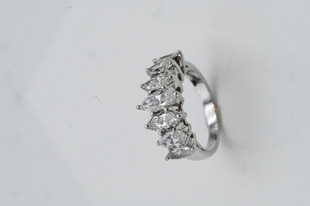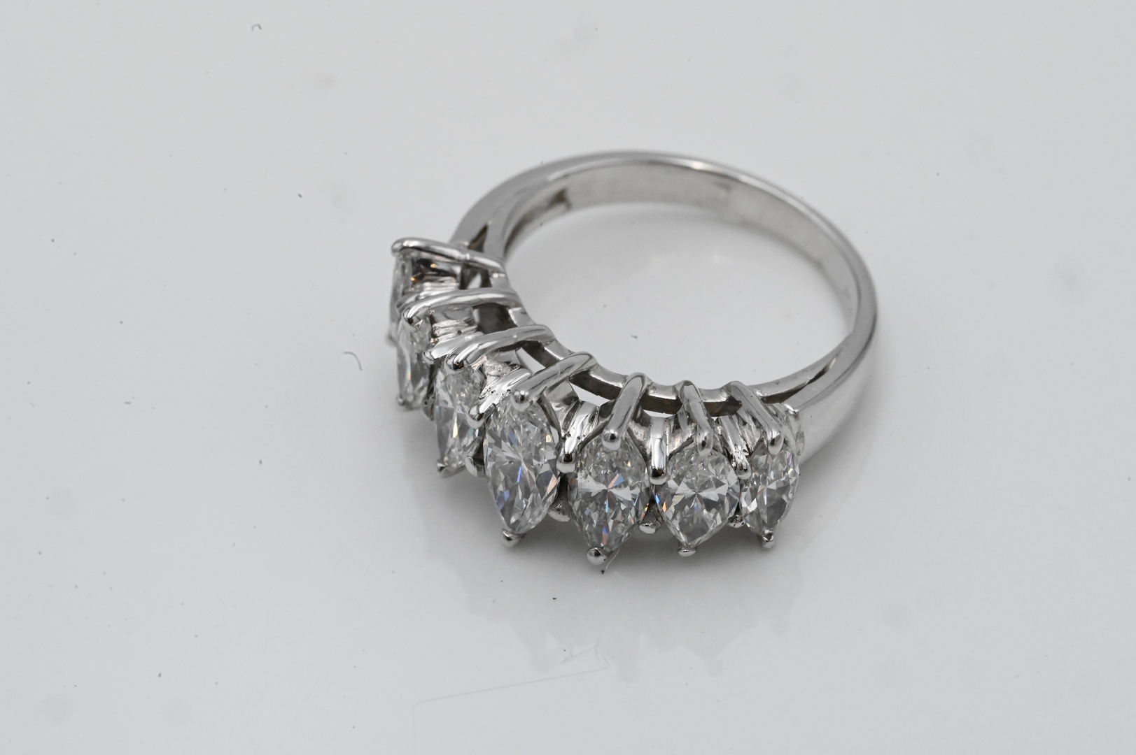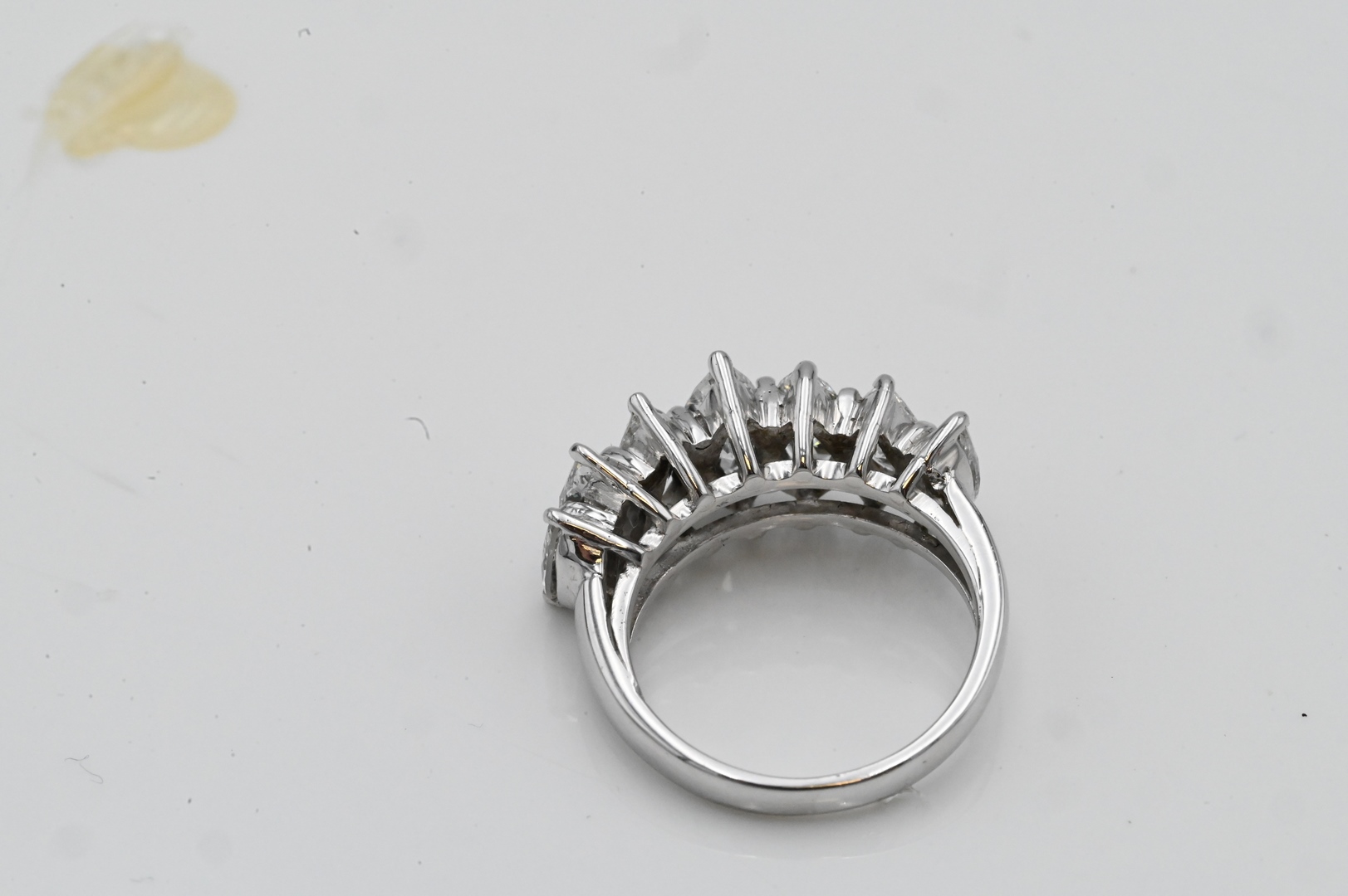 Platinum and Diamond Ring set with marquise diamonds size 5, largest approximately 4 x 8.5 millimeters