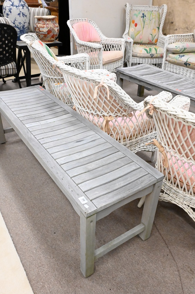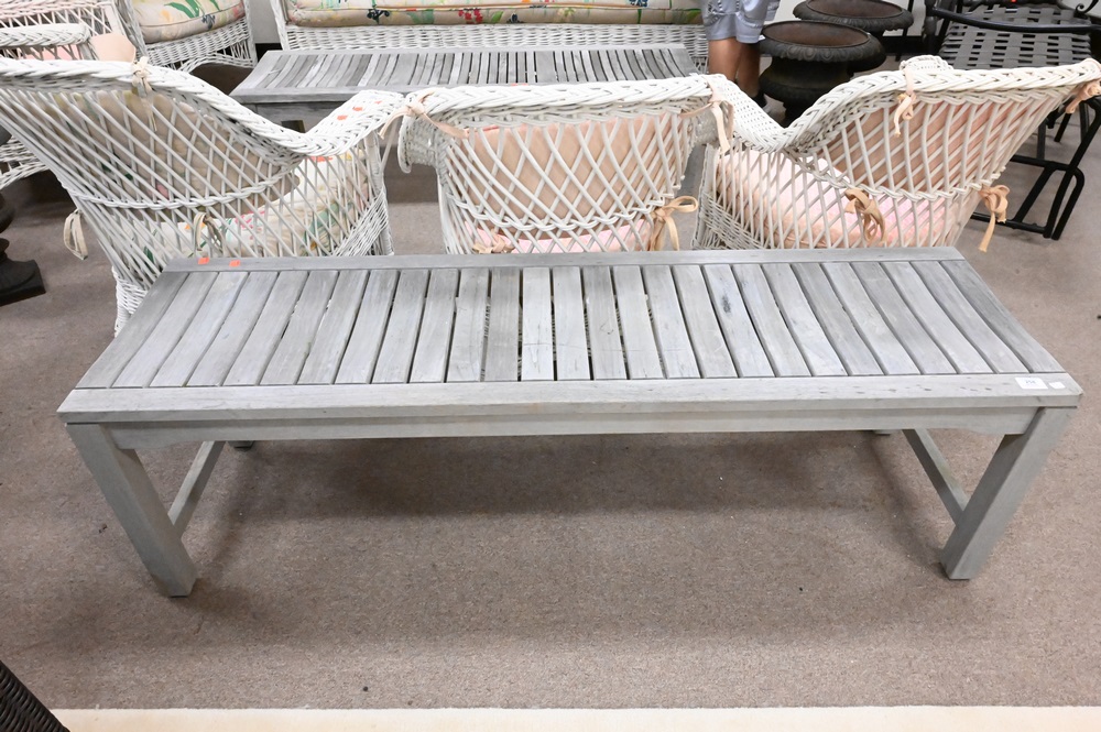 Teak Bench, height 18 1/2 inches, top 17 1/2″ x 60″.