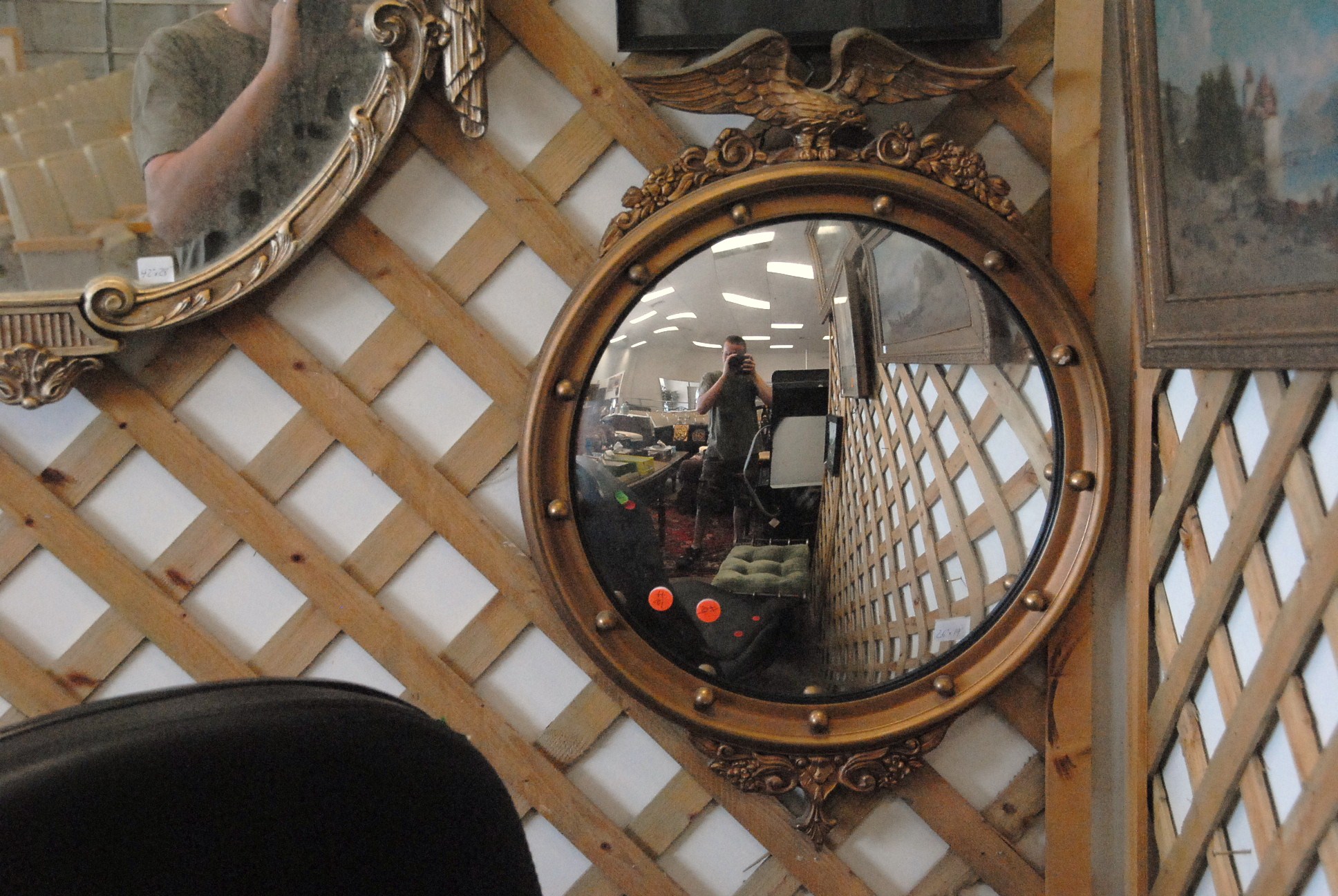 Two mirrors one with a drape design.