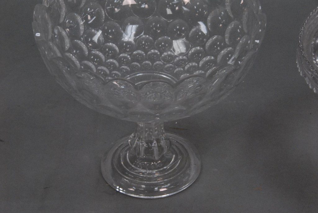 Two piece lot: sandwich glass compote and pressed glass cake plate on pedestal.