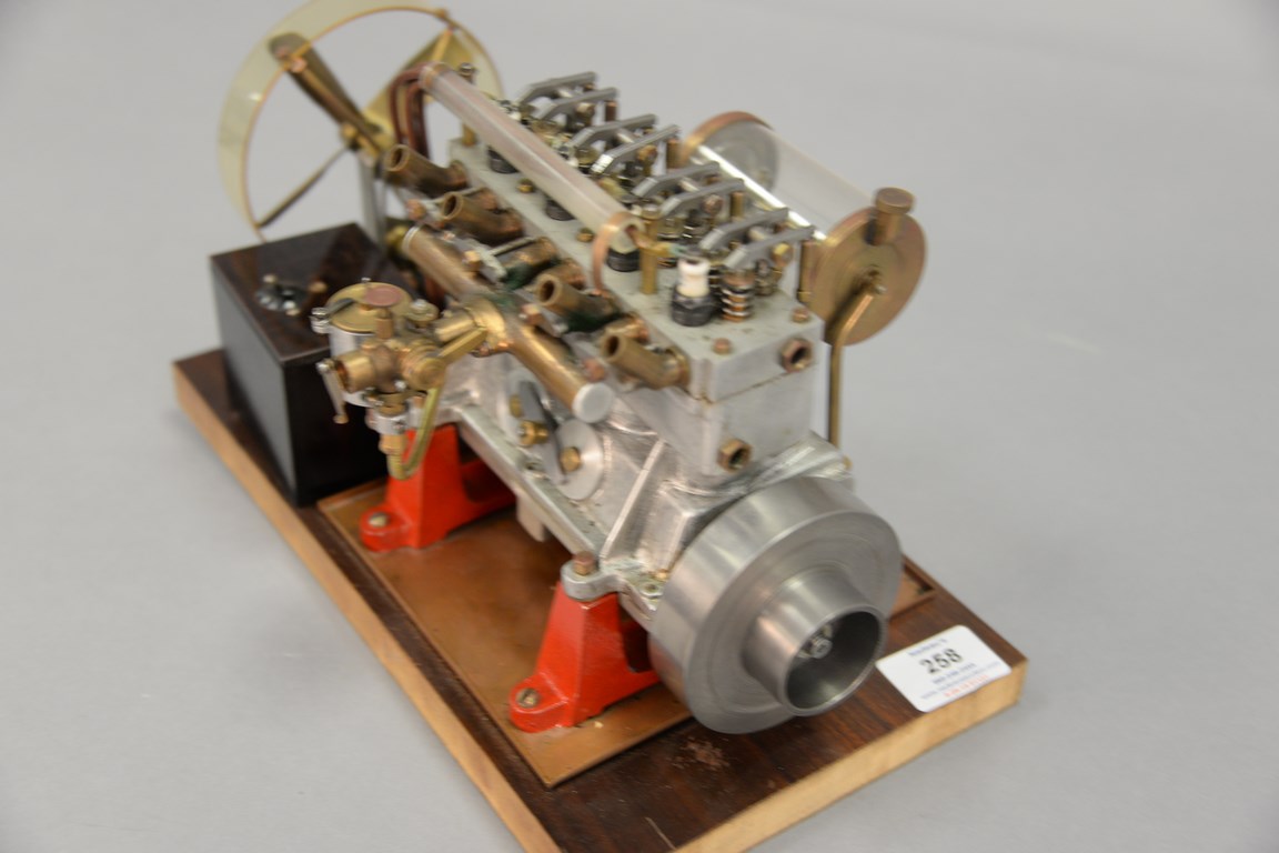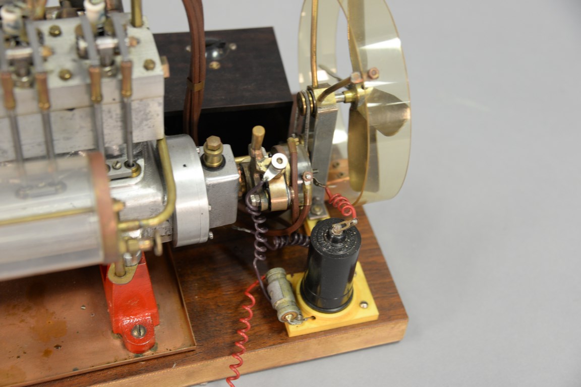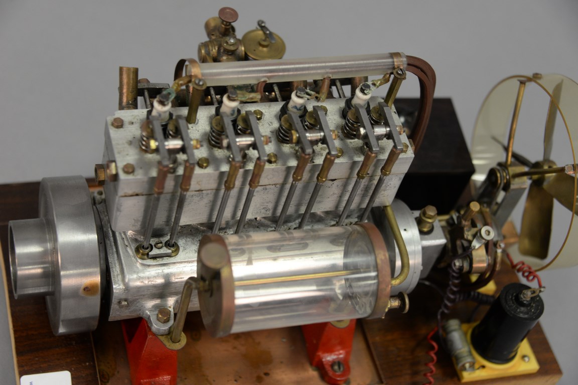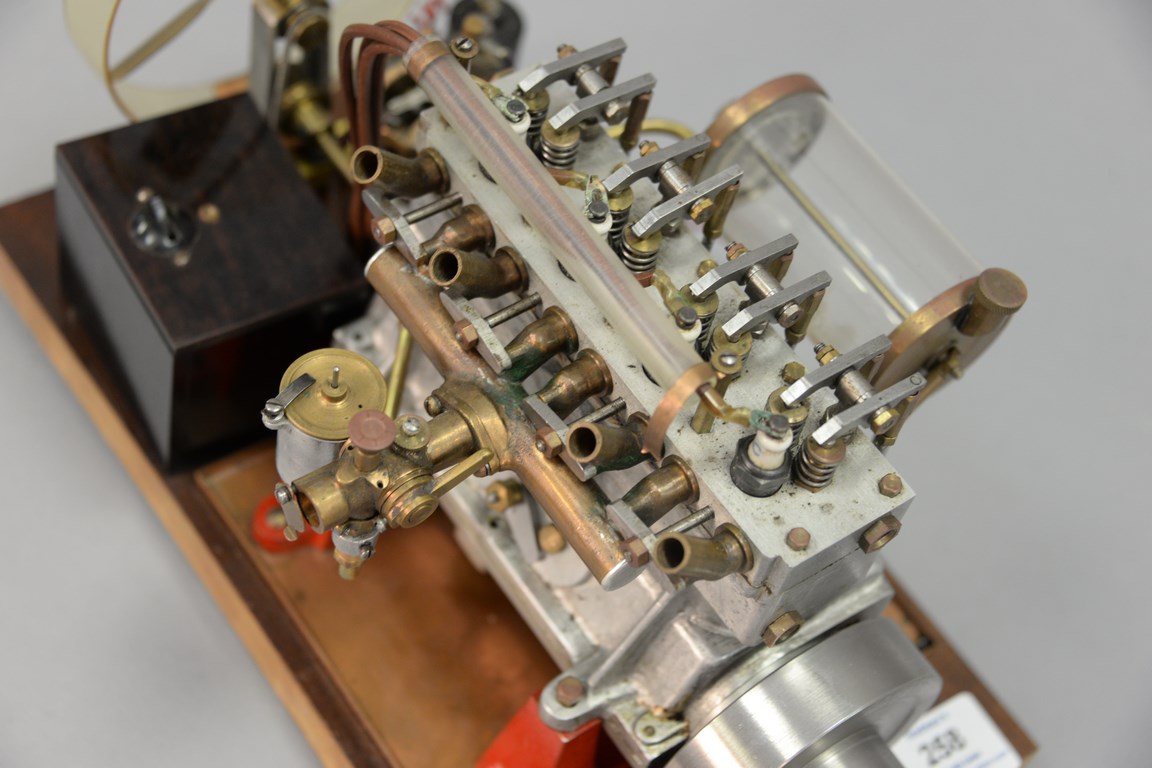 Lot 258: Vintage 1930’s Elmer A Wall 30 cc high speed working model racing engine with blue prints, ht. 8 in. wd. 12 1/2 in. dp. 7 in.
