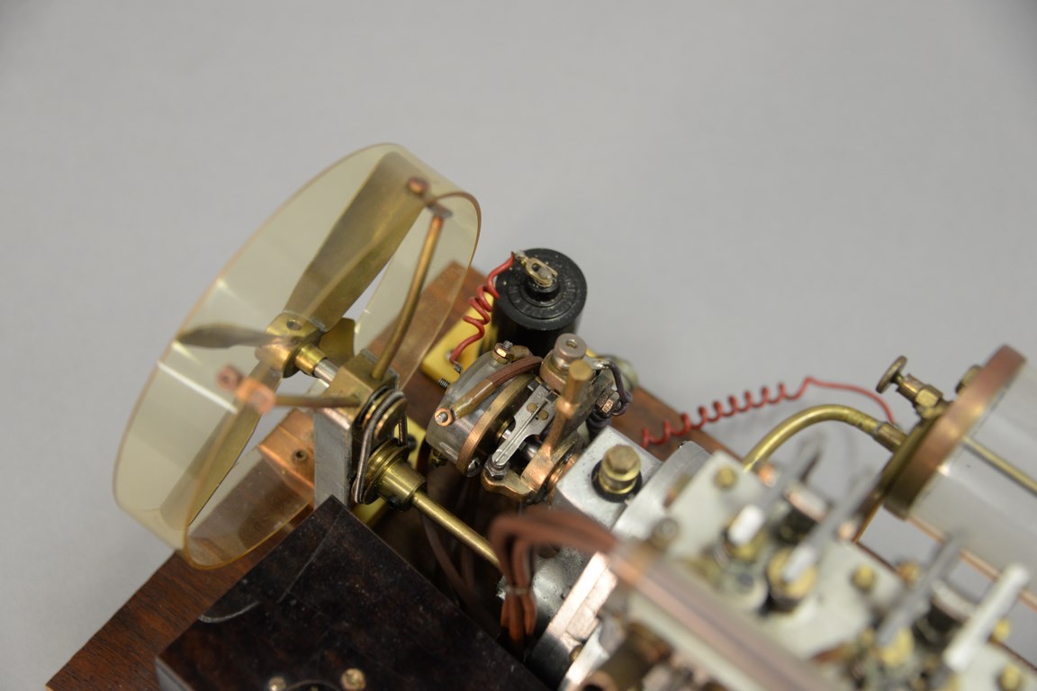 Vintage 1930’s Elmer A Wall 30 cc high speed working model racing engine with blue prints, ht. 8 in. wd. 12 1/2 in. dp. 7 in.