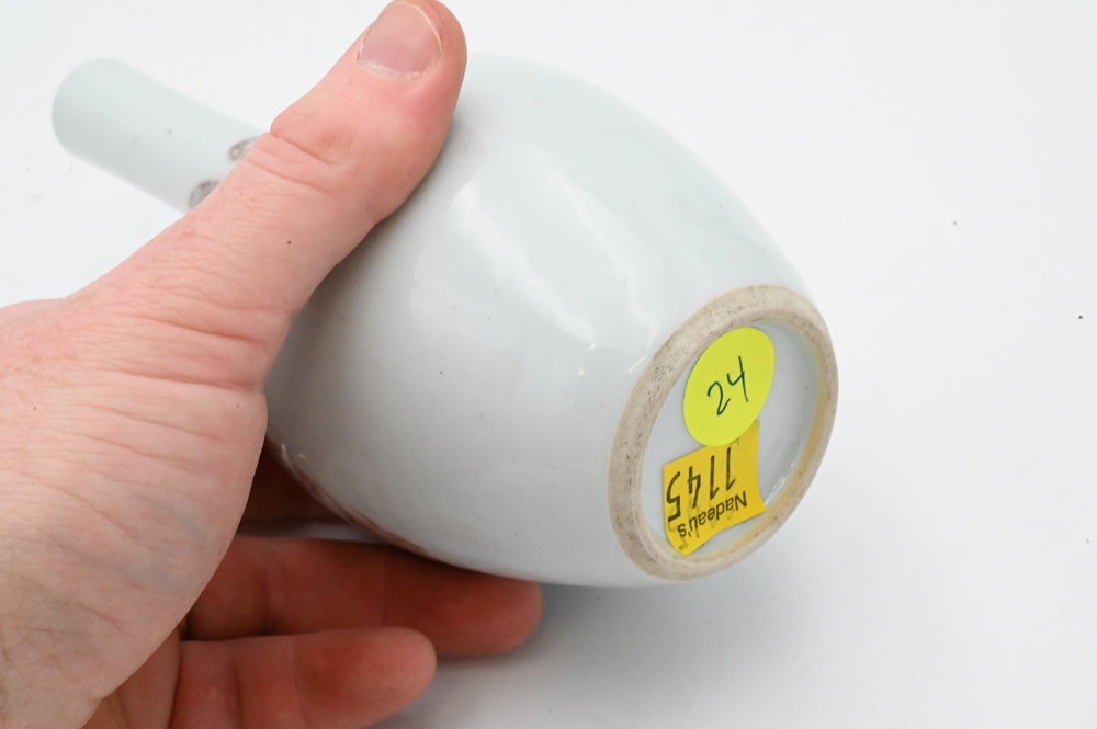 Lot 259: Chinese Underglaze Copper Red Dragon Vase, 19th century, bottle shape and for the scholar’s table, unmarked, height 7 1/2 inches.