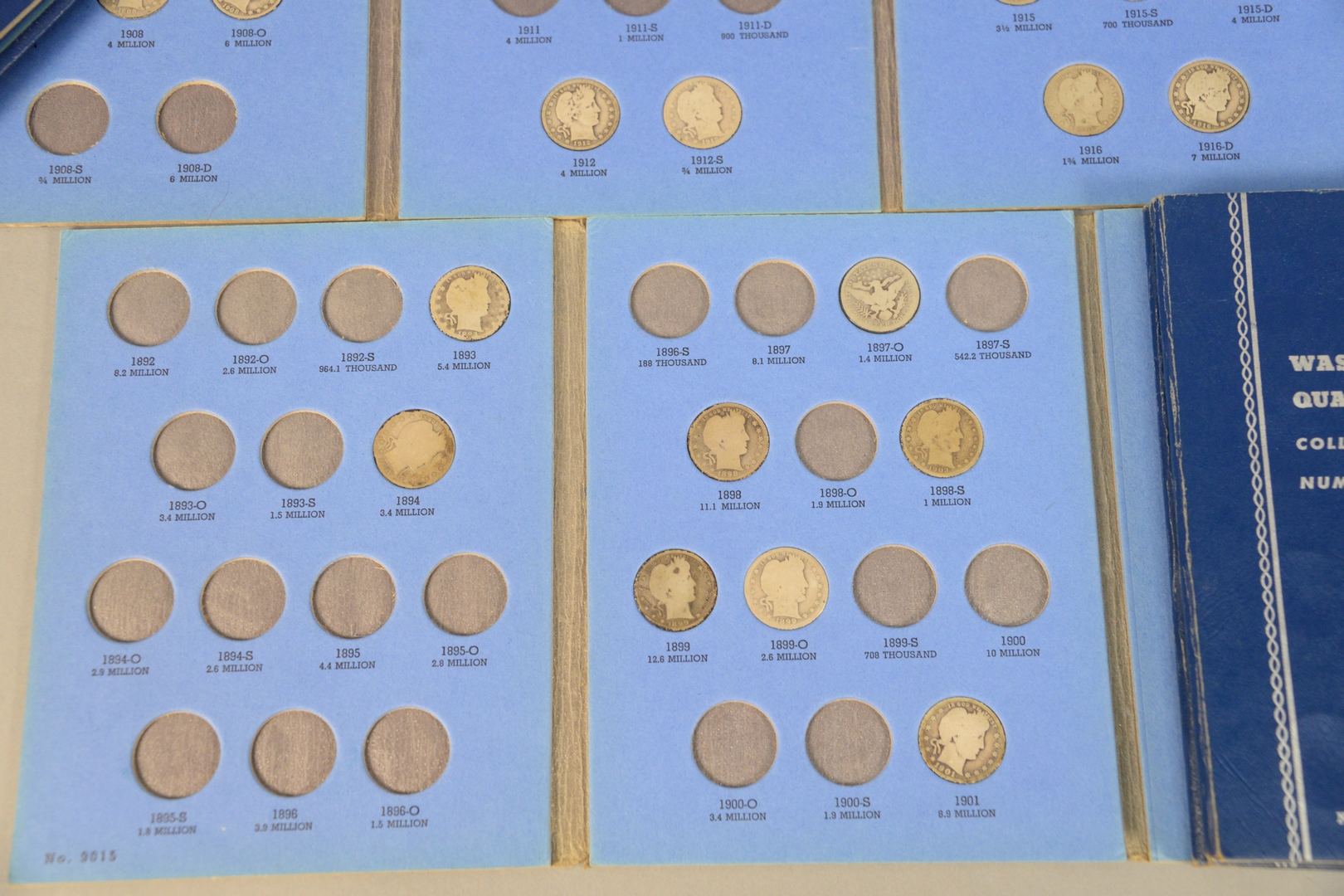 Coin lot to include, 7 partial albums, 20.00 face, Barber quarters standing Liberty quarters, Washington quarters.