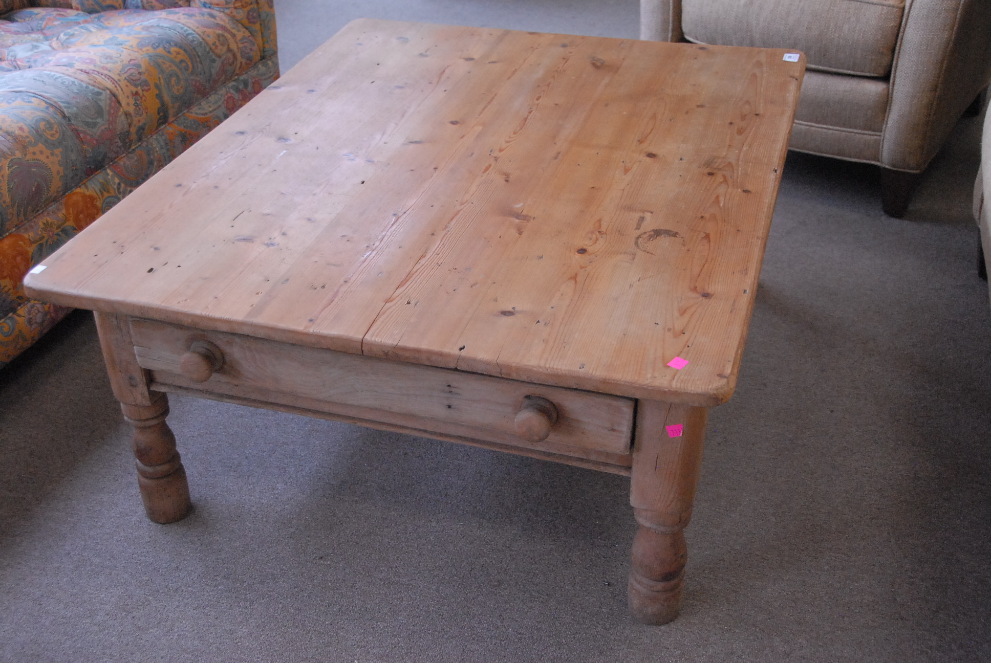 Irish pine coffee table with drawer on end, 35 x 44.