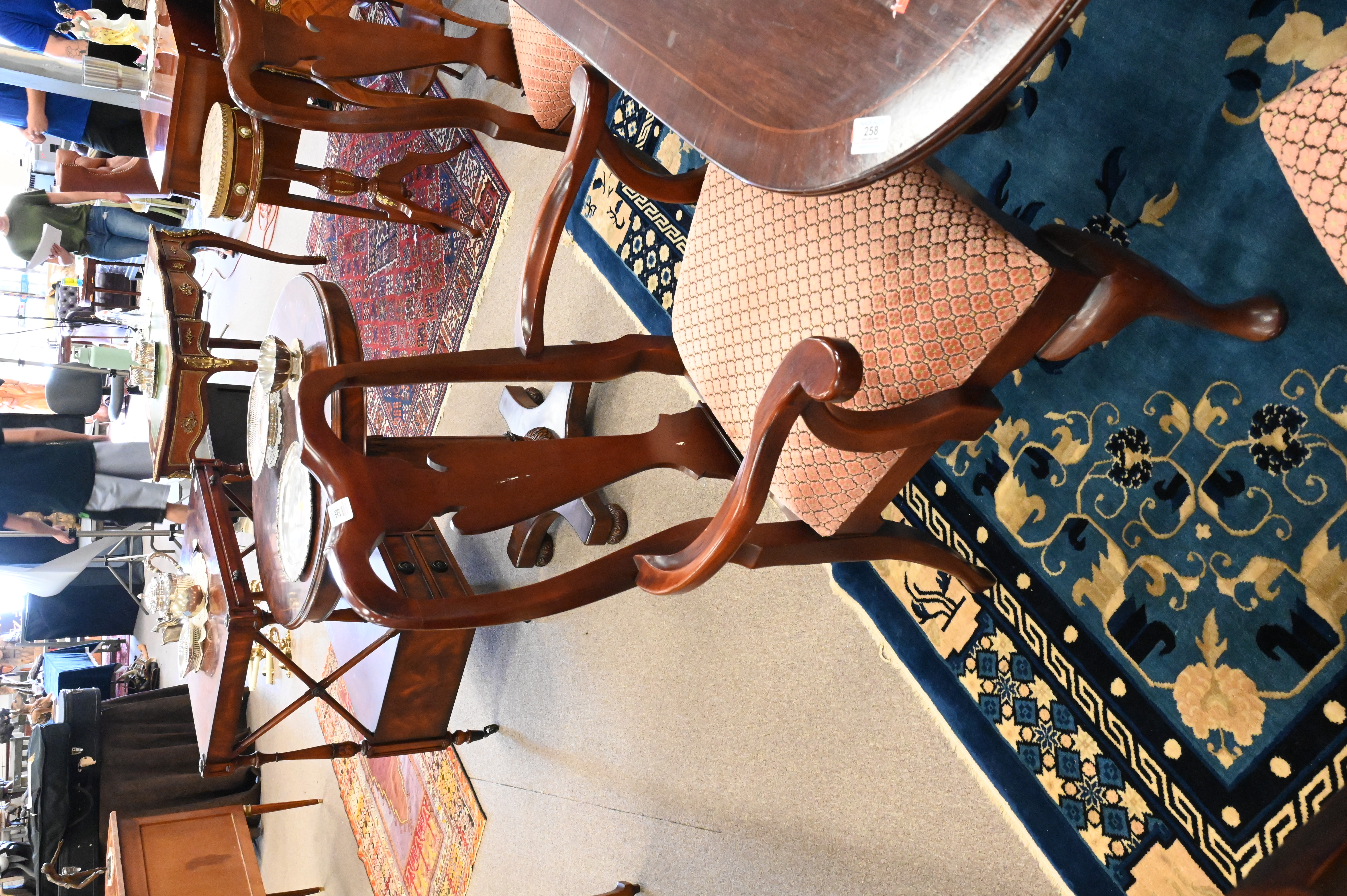 Set of 10 Mahogany Queen Anne Style Dining Chairs, 2 arm chairs, 8 side chairs, height 38 inches, width 27 inches.