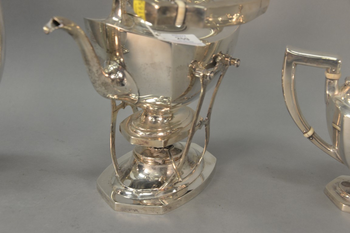 Lot 259: Six piece sterling silver tea and coffee set with tilting pot, coffee pot, teapot, sugar, creamer, and waste bowl. ht. 3 3/4 to 9 …