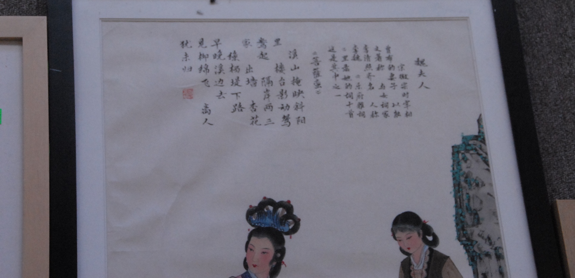 Three Oriental paintings watercolor of two Guanyin 25 x 16, watercolor of horse running 10 x 7, and watercolor of man sitting 20 x 14.