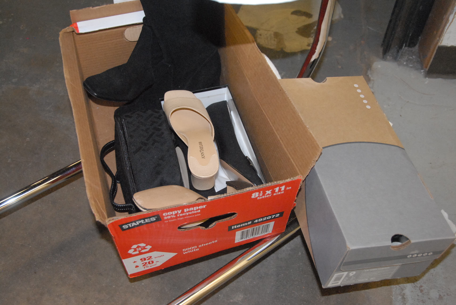 Lot 259: Woman’s clothing group to include skirts, purses, jackets, coats, and shoes from White House Black Market, Ann Taylor, Talbots, Burb…