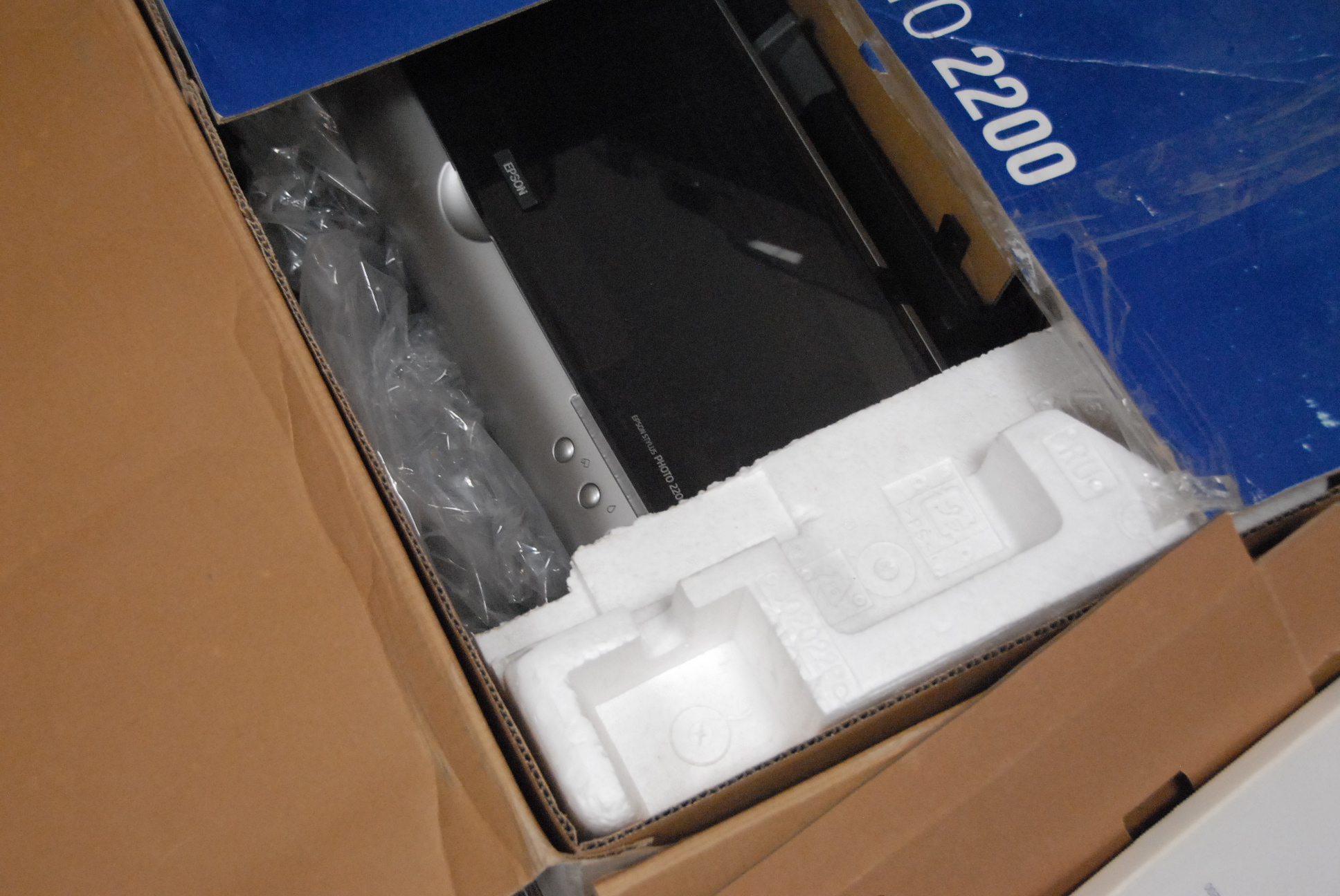 Miscellaneous electronics including Apple computer, HP Photoshop A616, and Epson Stylist Photo 2200, etc.