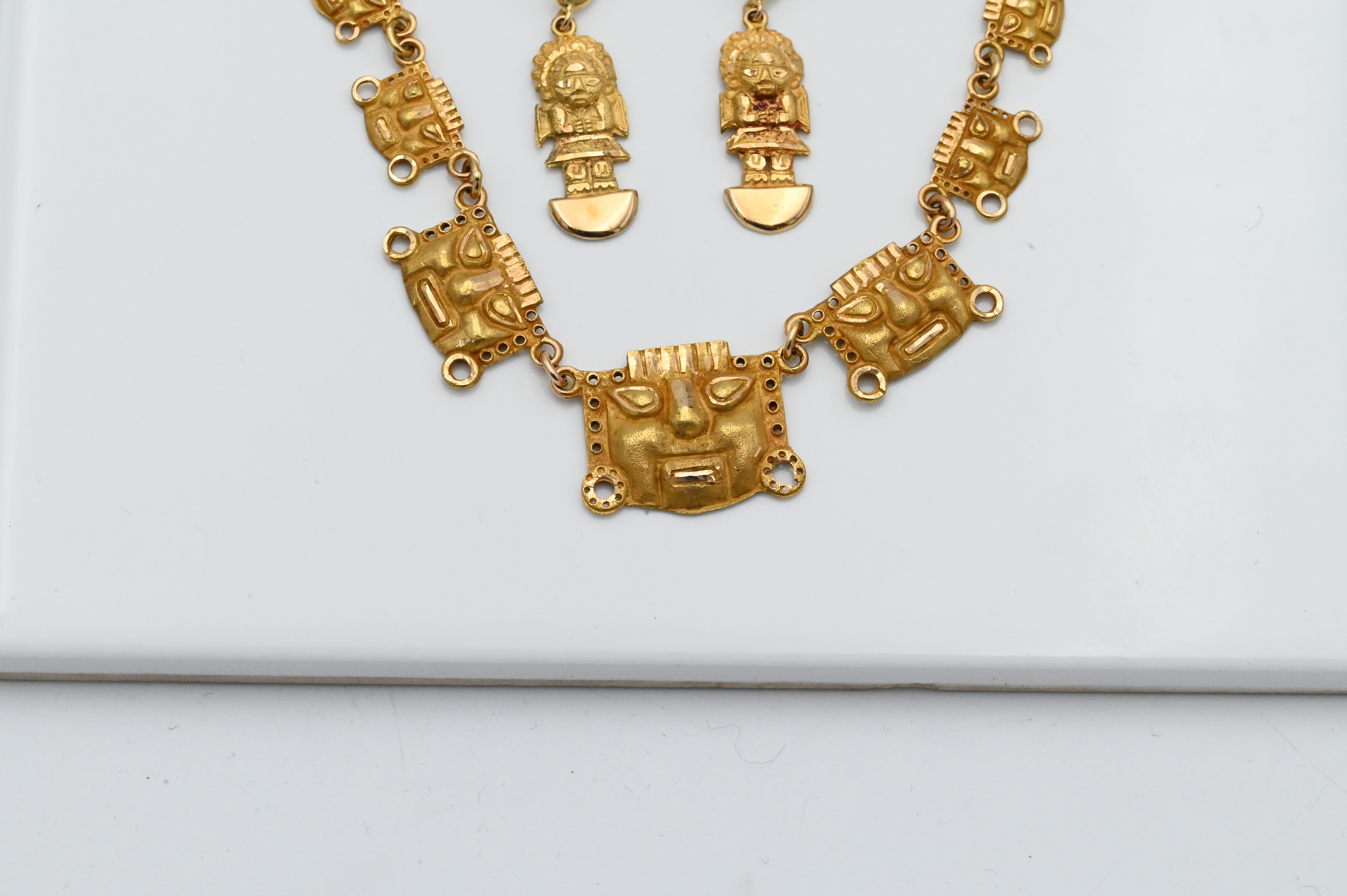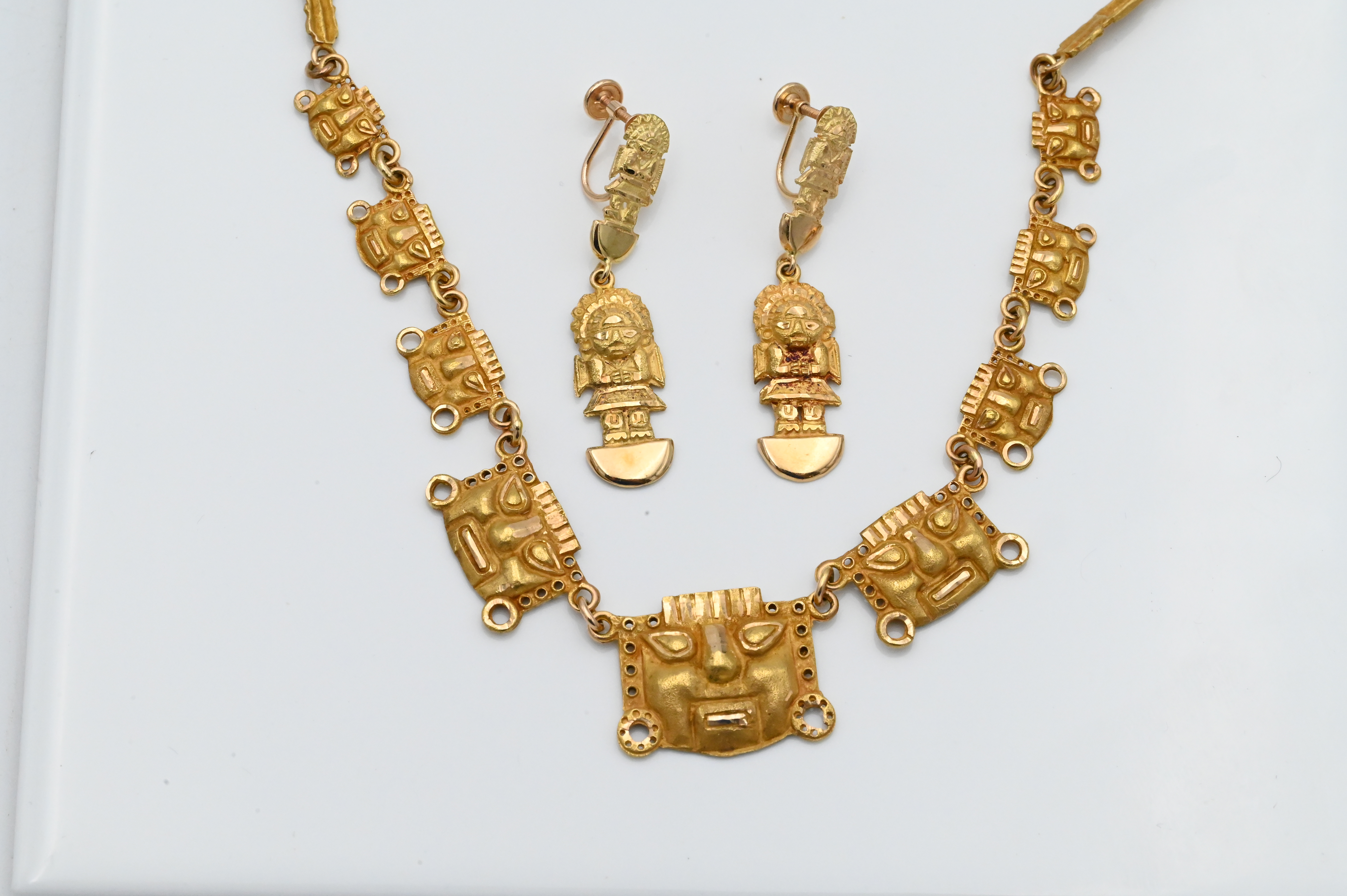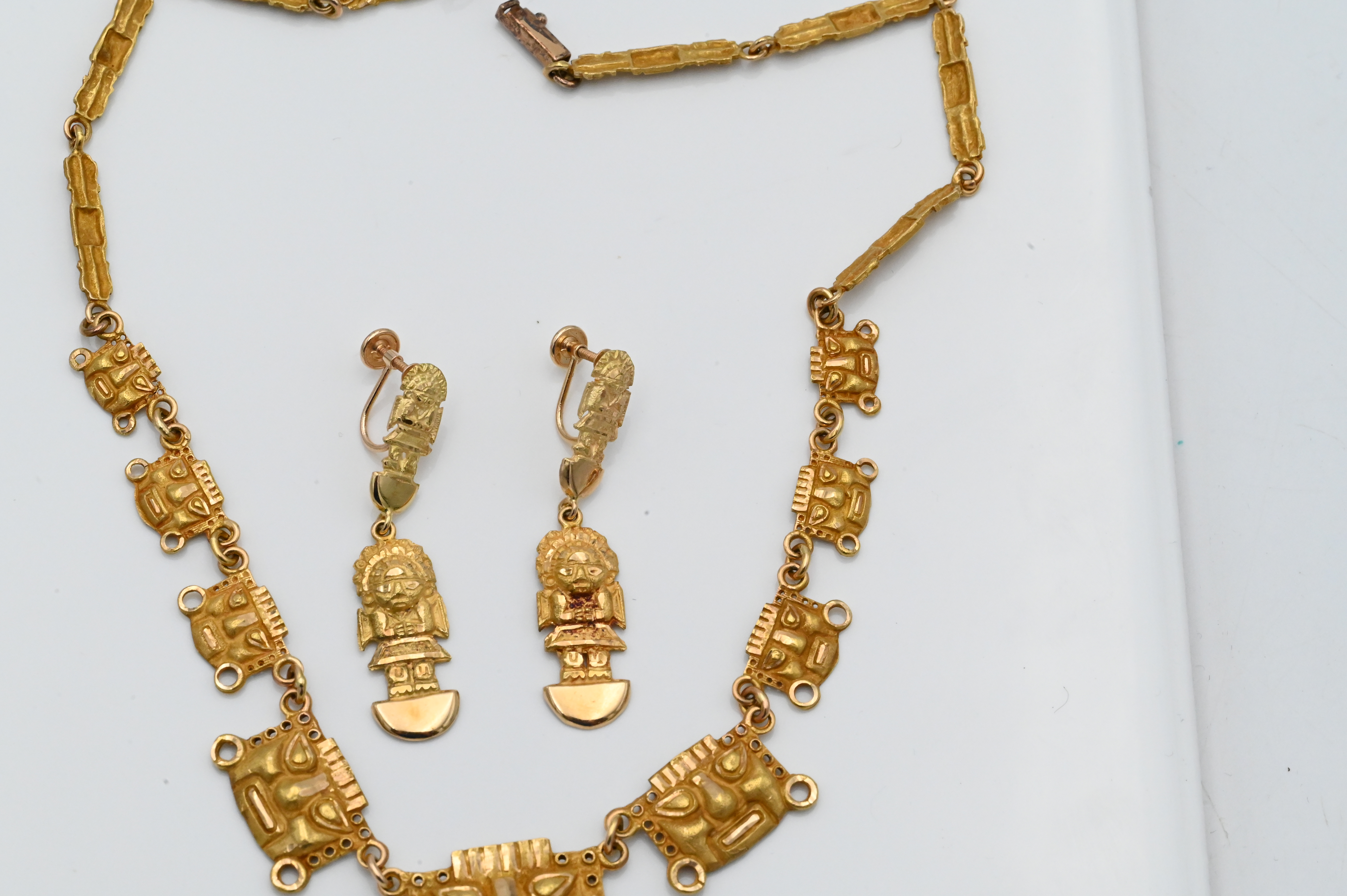 14 Karat Yellow Gold Three Piece Set, to include a pair of pierced earrings along with a necklace, length 15 inches, 29.1 grams.