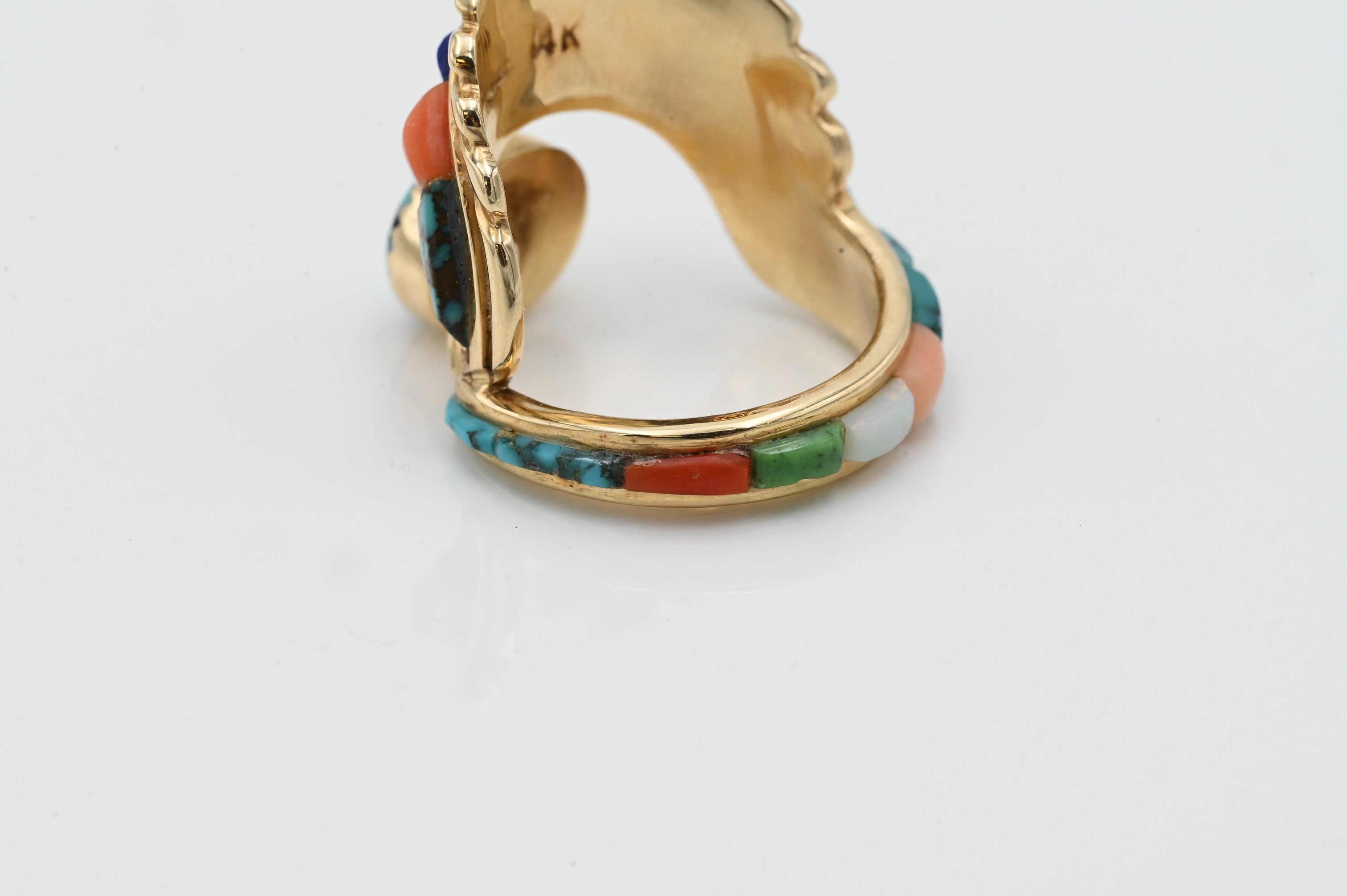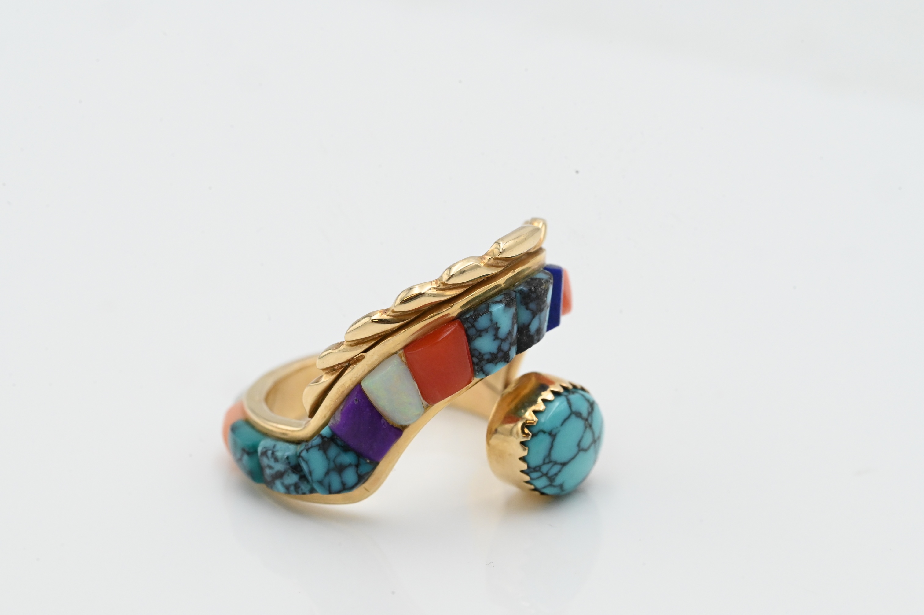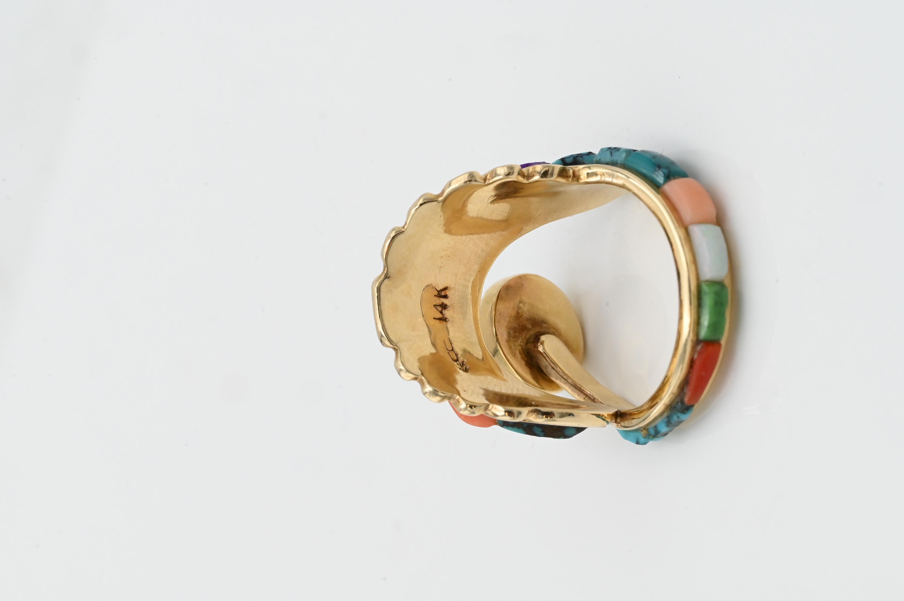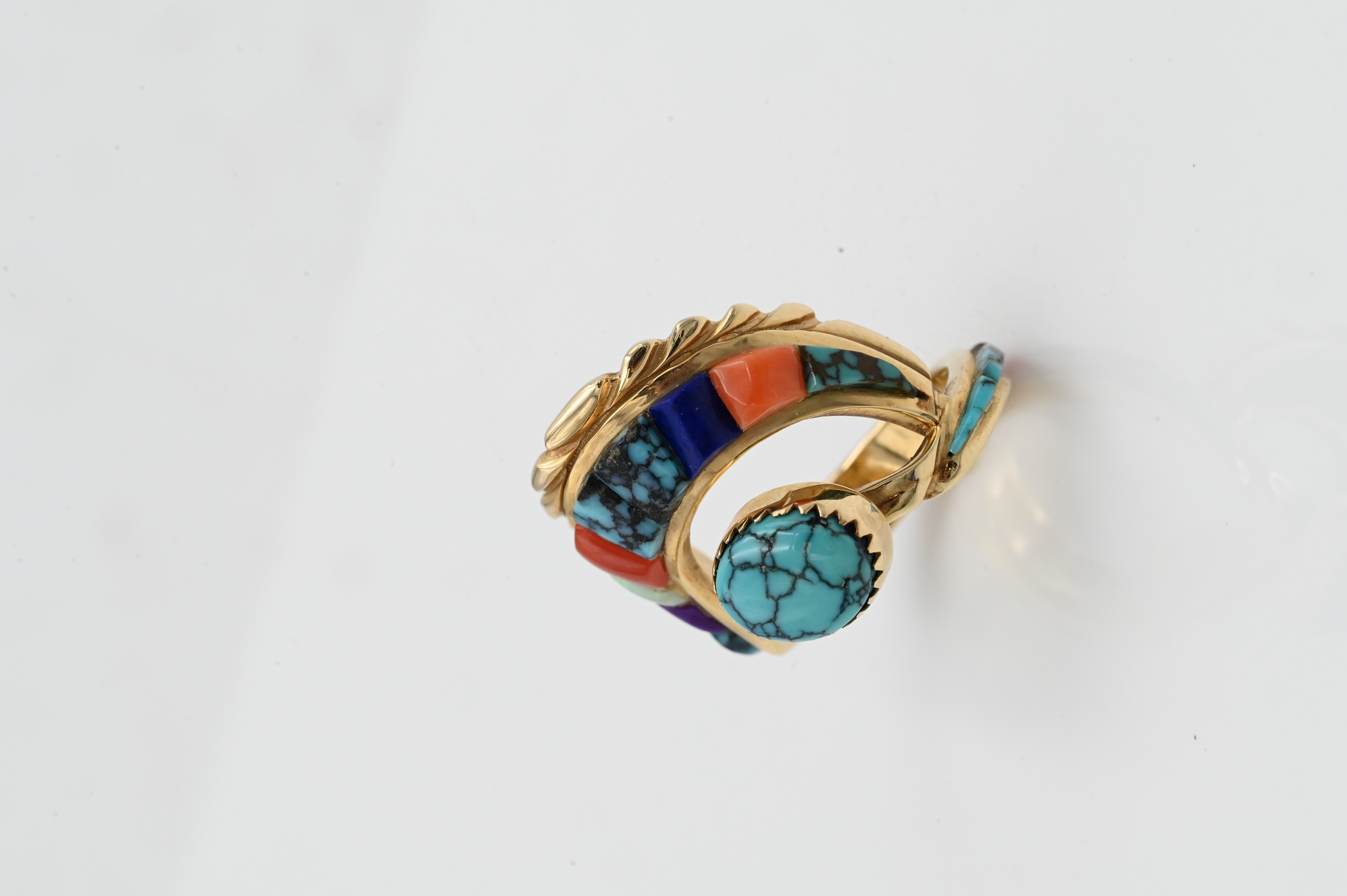 Lot 26: 14K Yellow Gold Ring having Turquoise, Coral, and Opal Stones