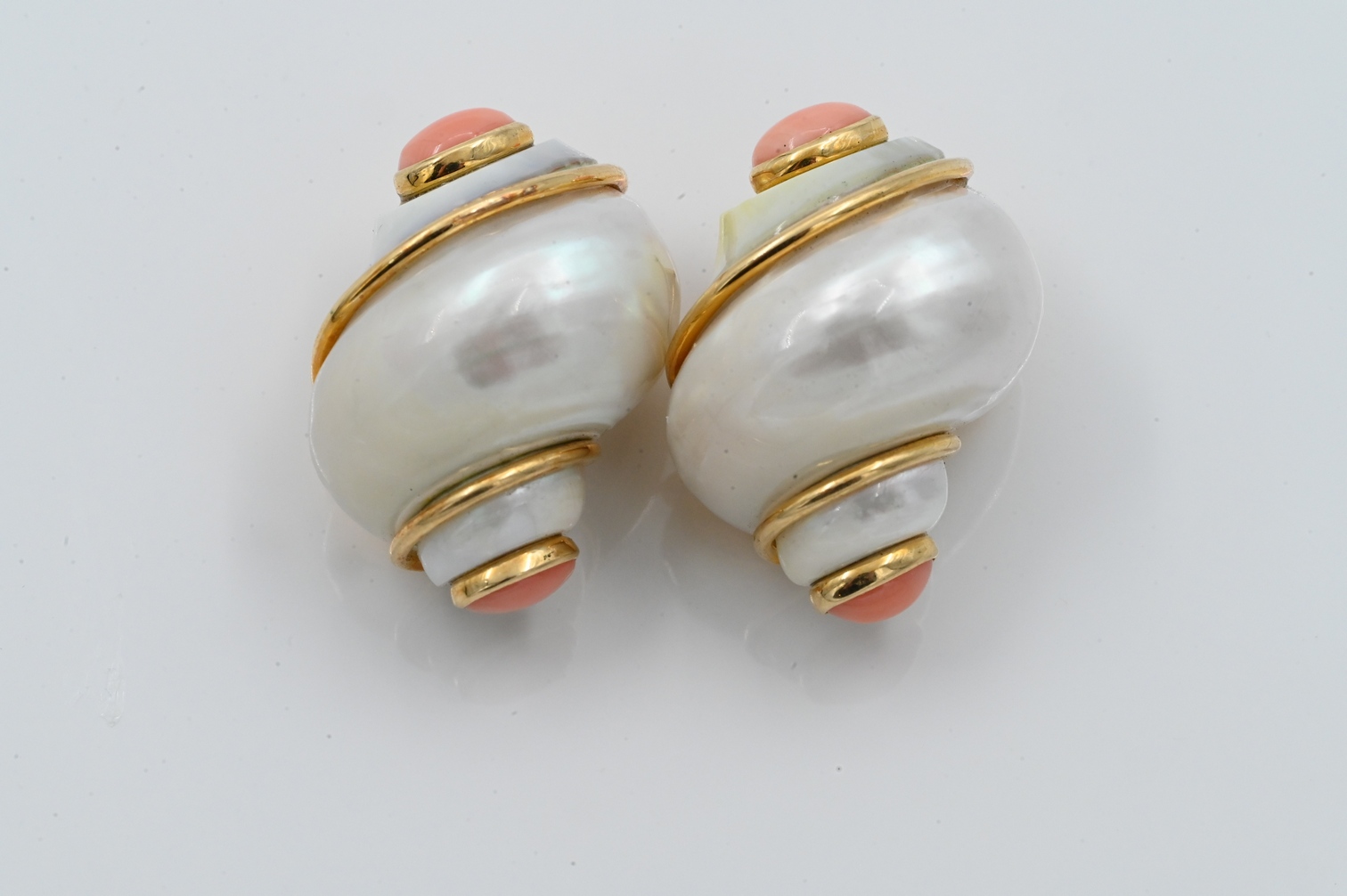 Lot 26: 18K Seaman Schepps Turbo Earrings