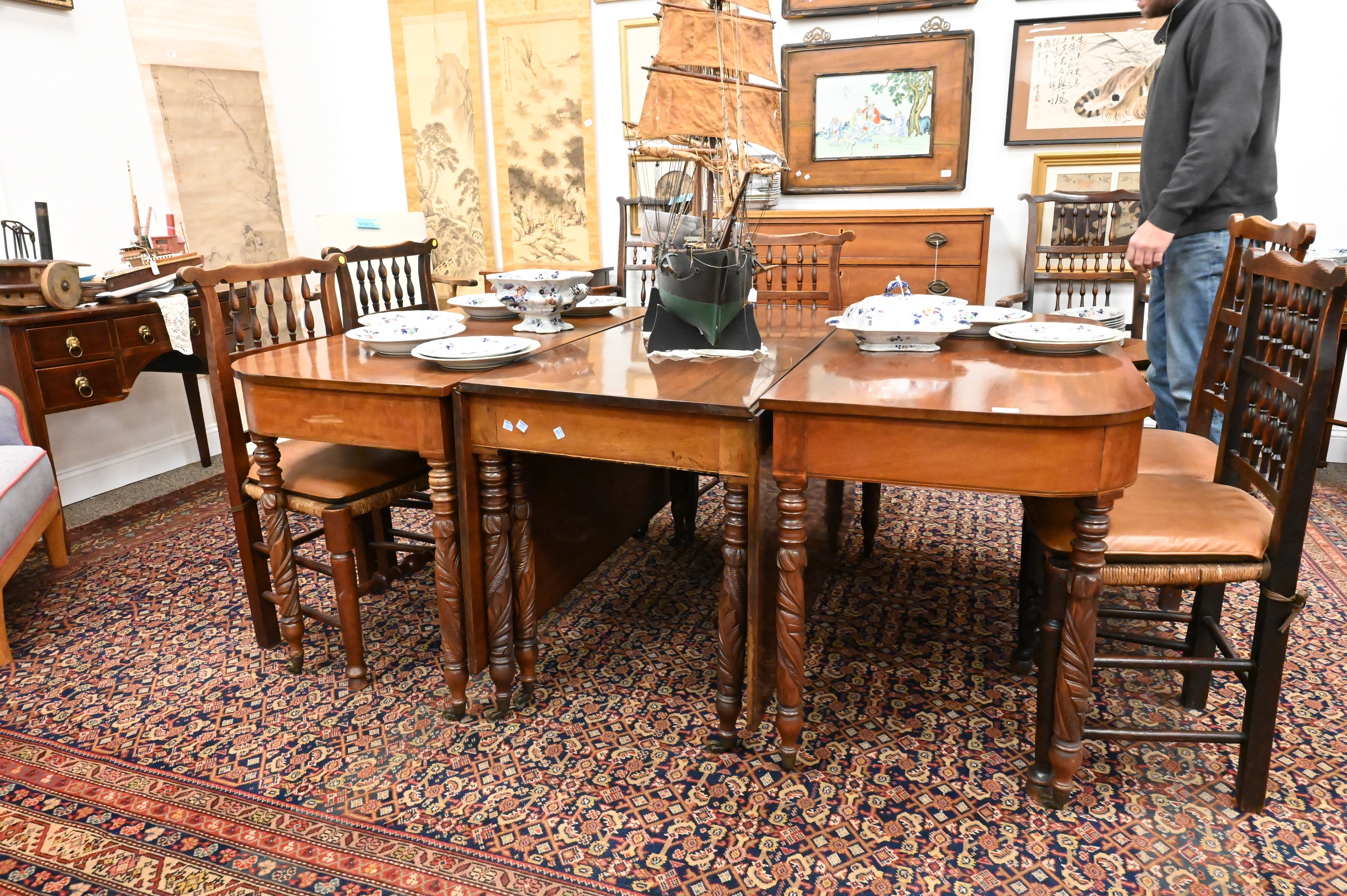 American Federal Mahogany Three-Part Dining Table