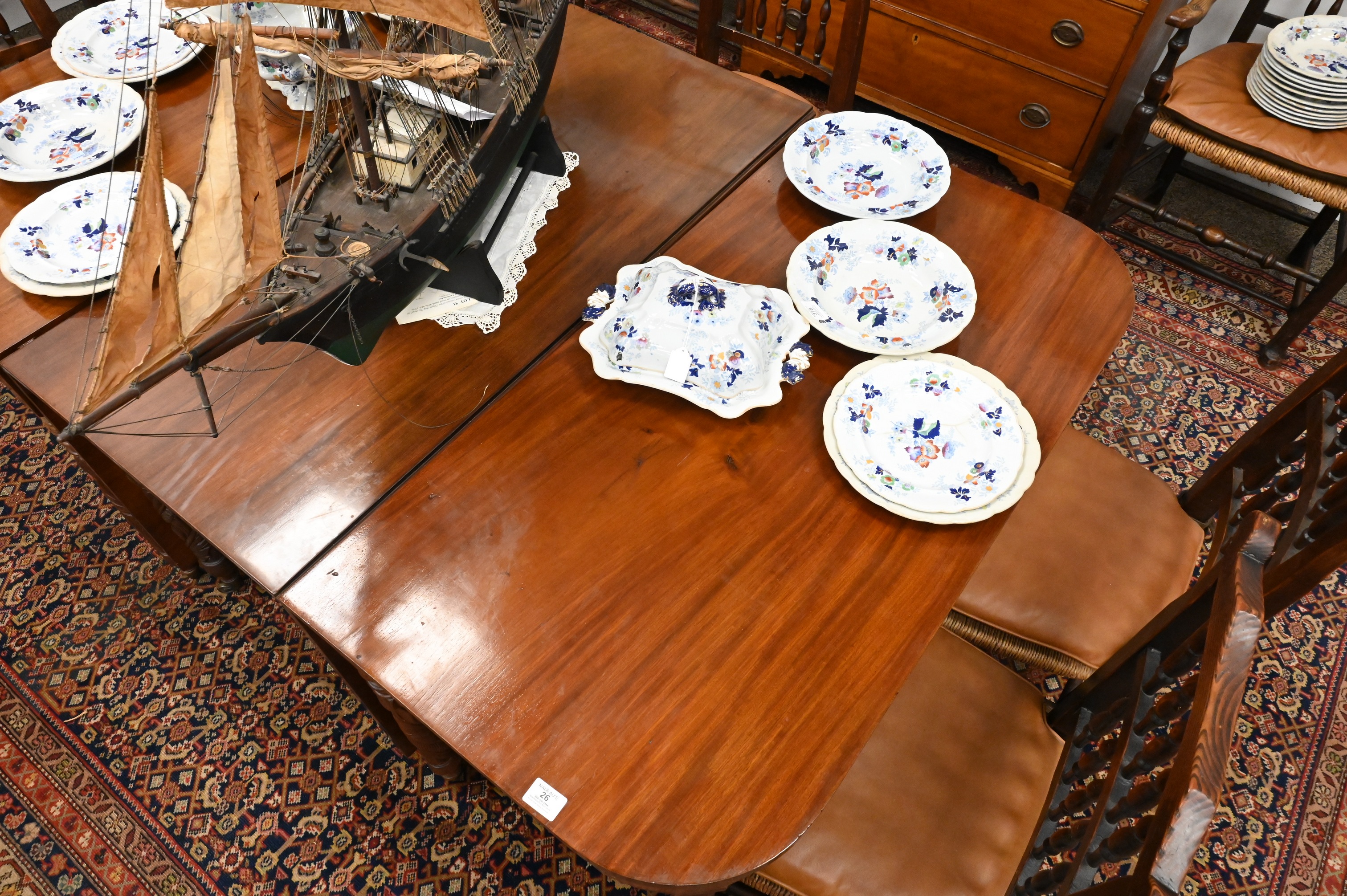 Lot 26: American Federal Mahogany Three-Part Dining Table