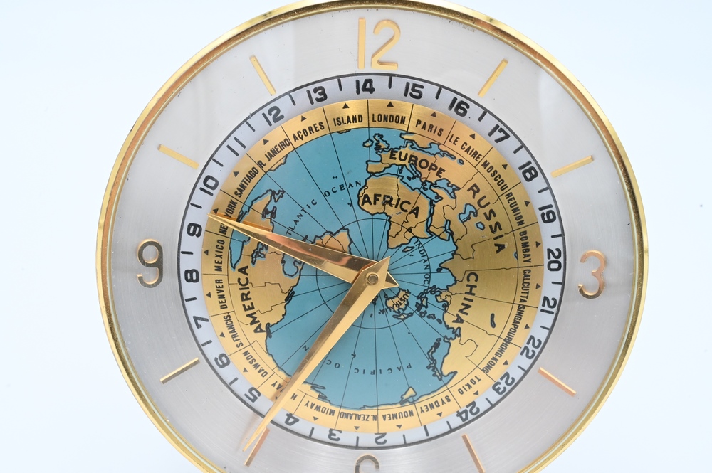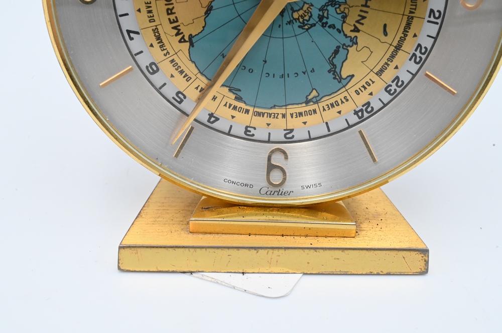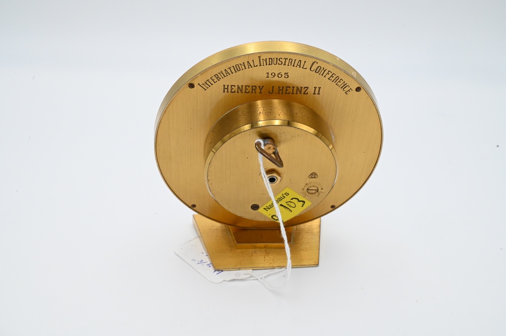 Lot 26: Cartier World Time, no 289 movement by Concord Swiss, 1960’s with back marked International Industrial Conference 1965 Henry J. Heinz II, height 4 1/4 inches.