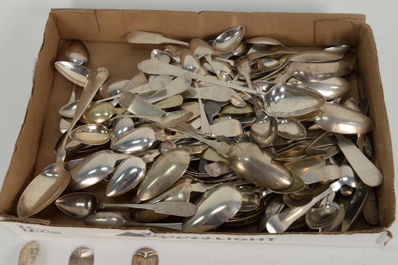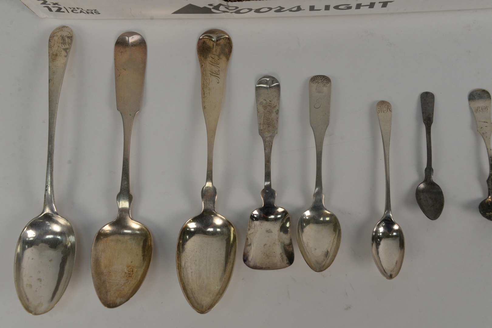 Lot 26: Coin Silver Lot of Various Spoons and various makers, 83 t.oz. Provenance: From a Newport, Rhode Island historic home, in the same family since 1761.