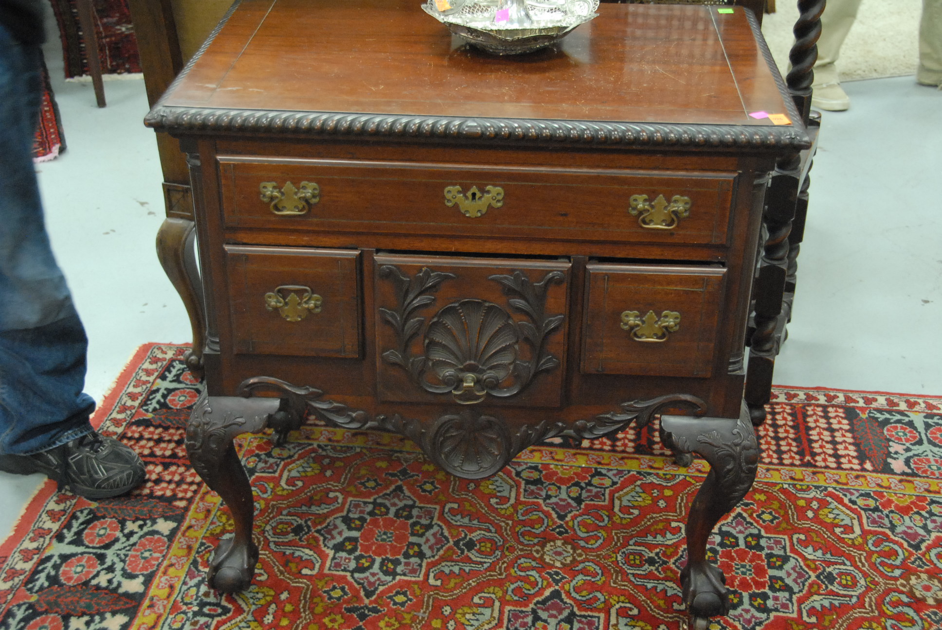 Custom mahogany Chippendale style lowboy, Philadelphia style with carved shells.