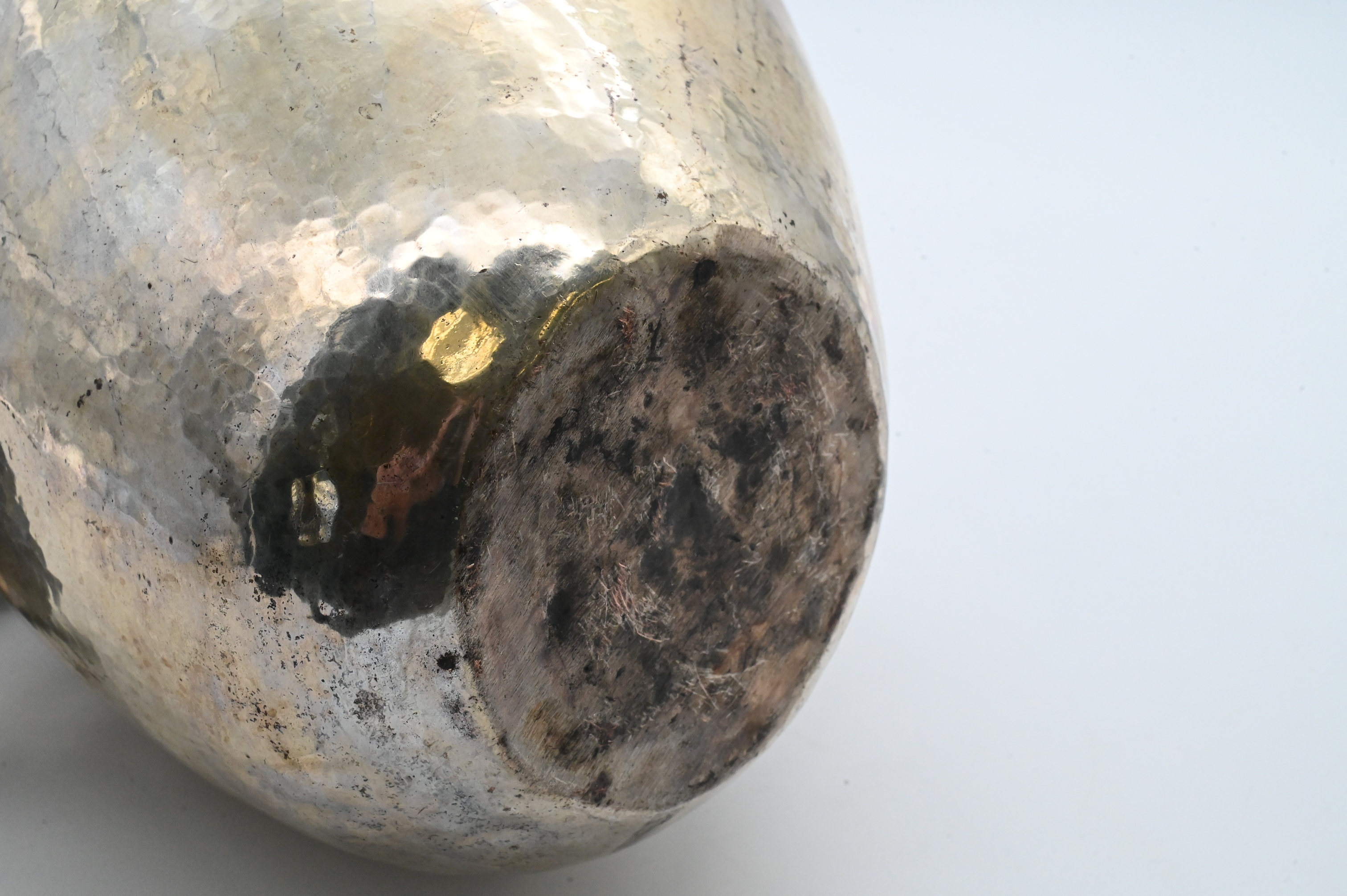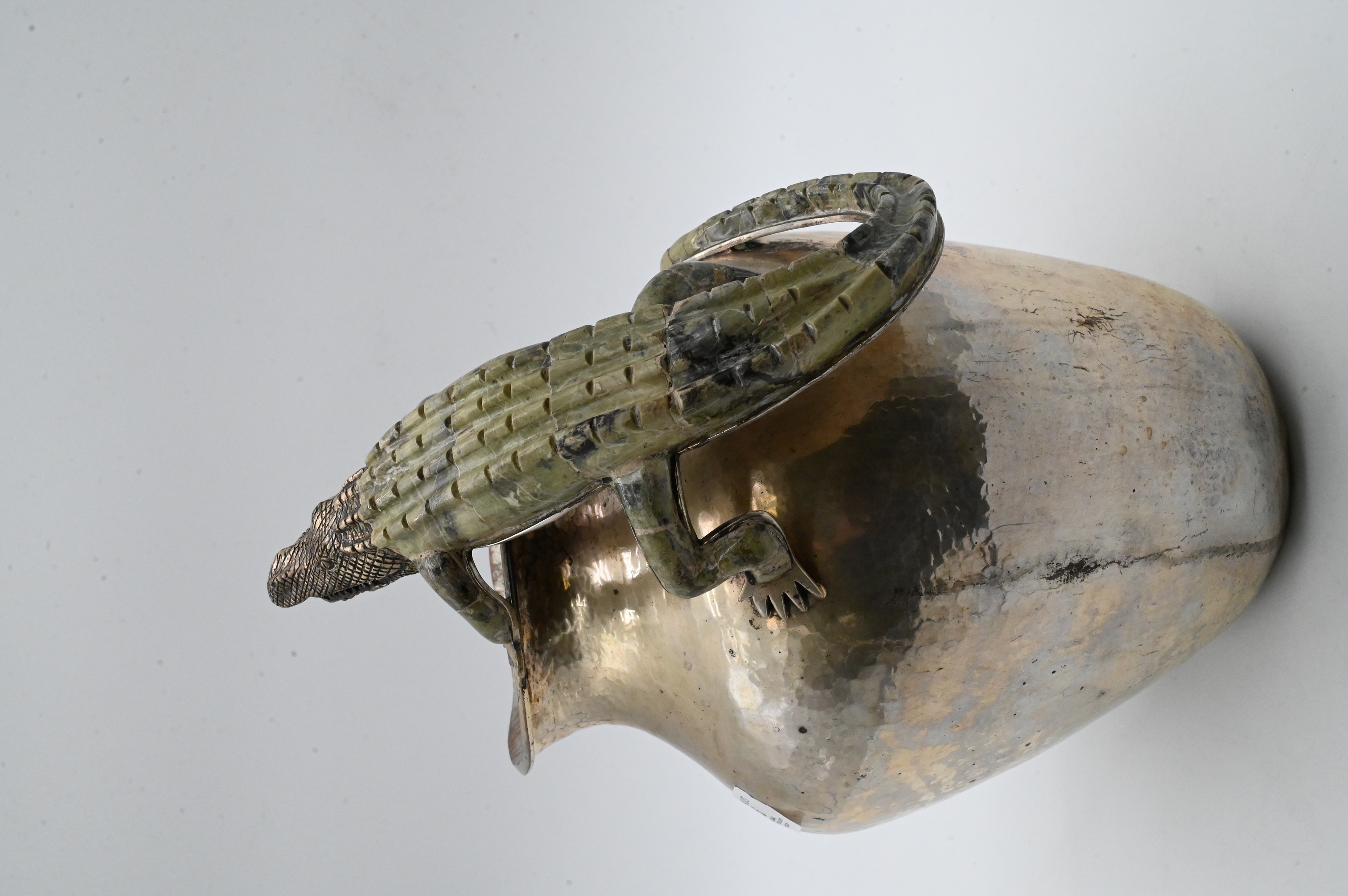 pitcher having hand hammered finish mounted with malachite mirror