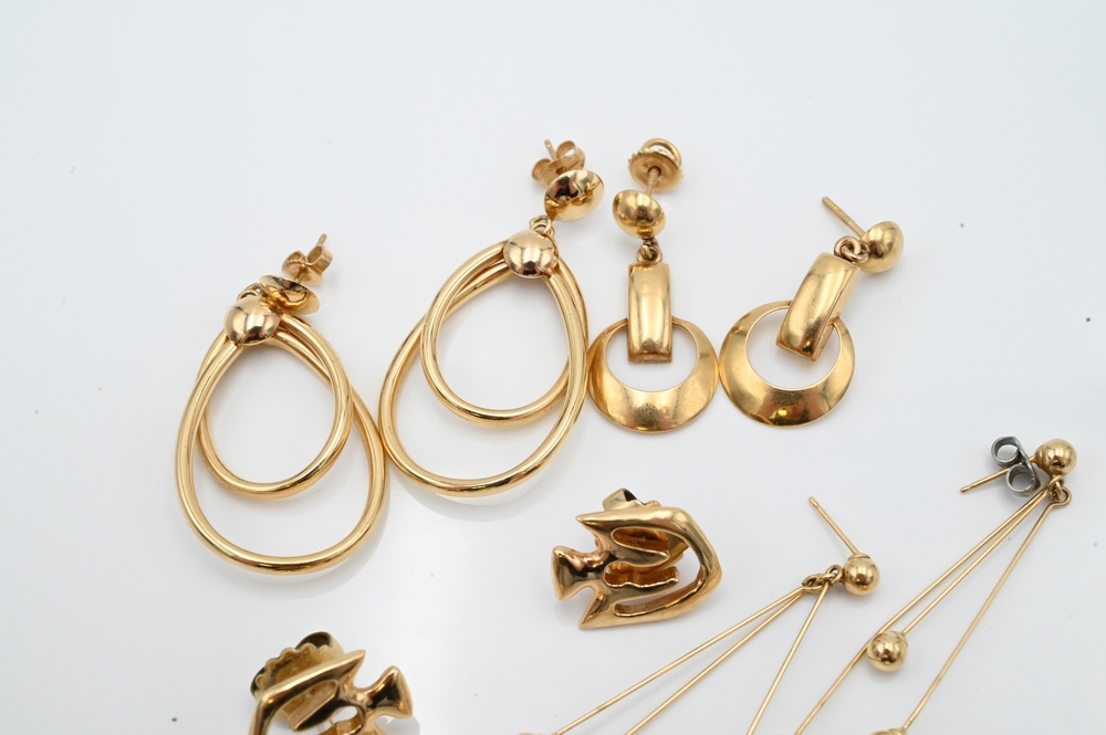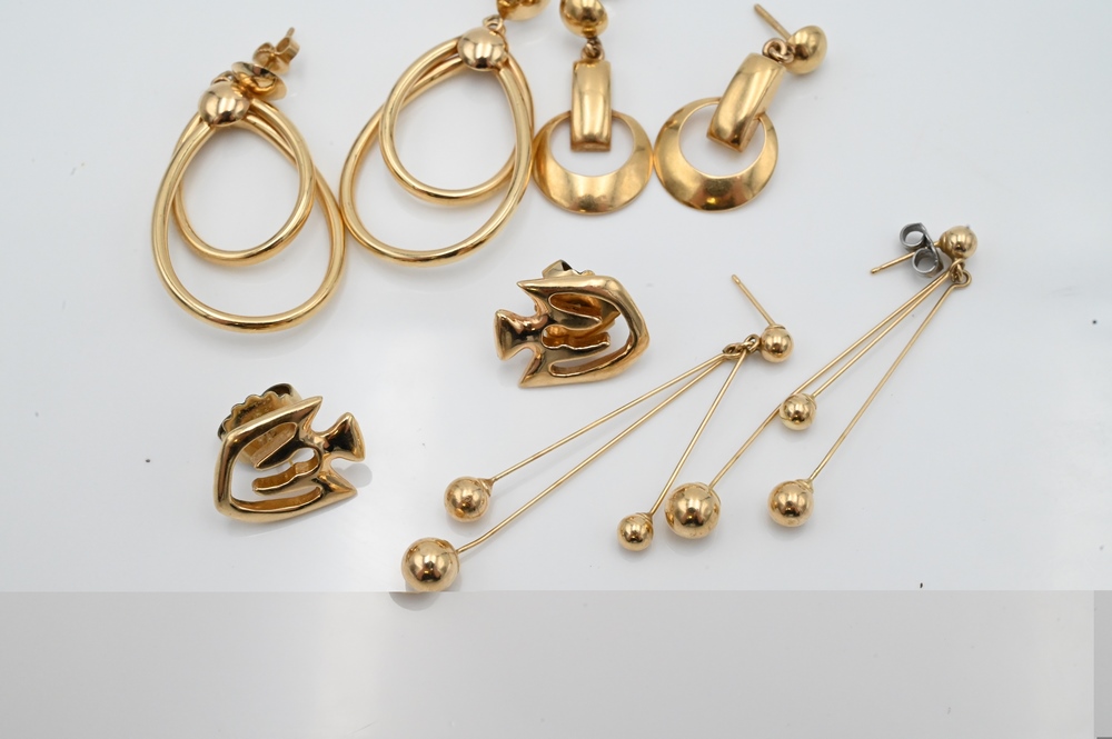 Four Pairs of 14 Karat Gold Pierced Earrings, 15 grams.